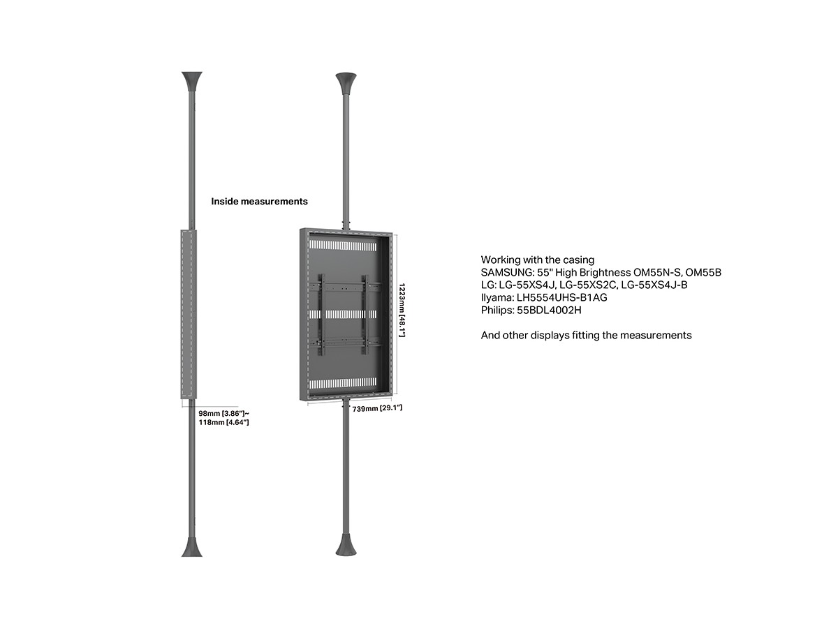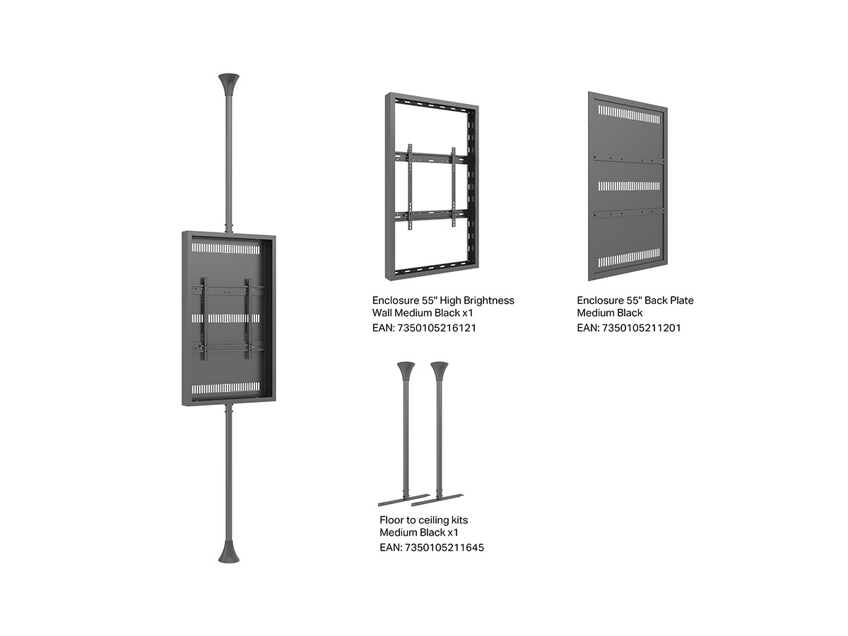 Product code:M Pro Series Enclosure 55" High Brightness Floor to Ceiling Medium Black – Floor to ceiling mount with casing for display, steel, 3m length, 1 screen, single side, fixed arms, VESA max 600x400 - screen size: 55" - black