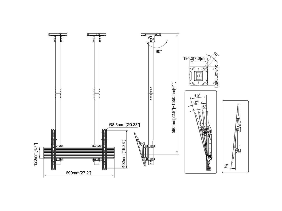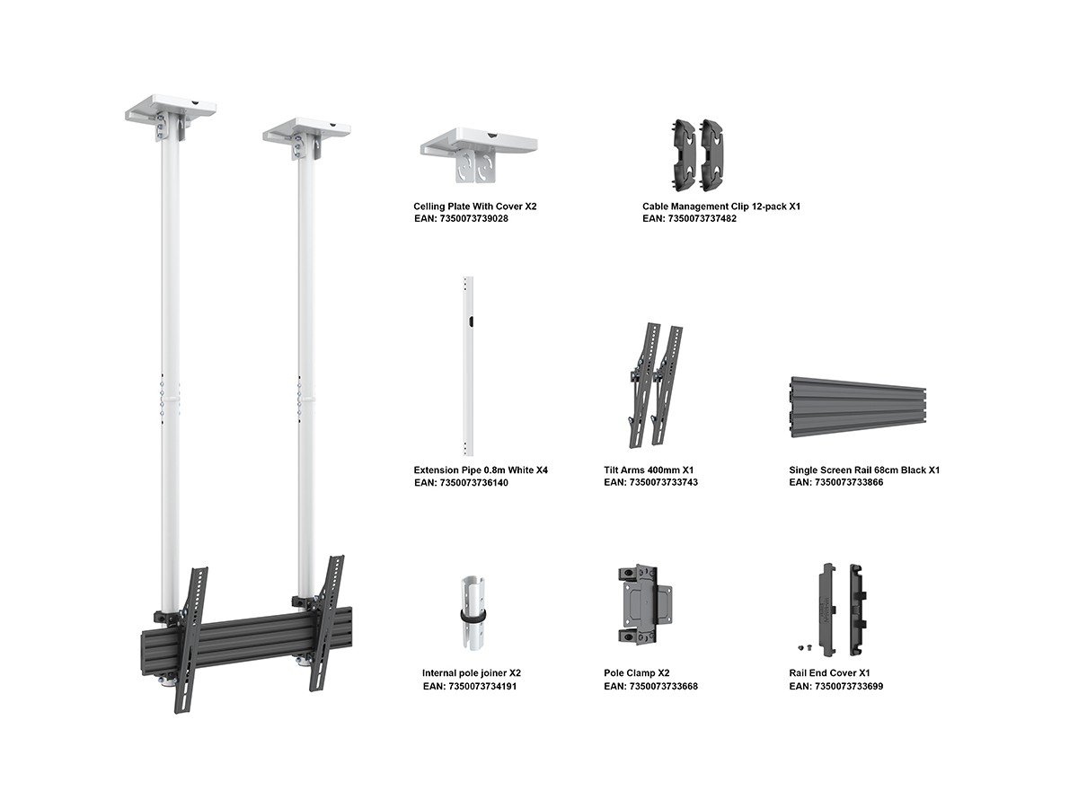 Product code:M Ceiling Mount Pro MBC1USD 600 White - Ceiling mount for LCD display, steel, 1.5m length, 1 screen, single side, tilt arms, VESA Max 600x400 - screen size: 40"-100" - white