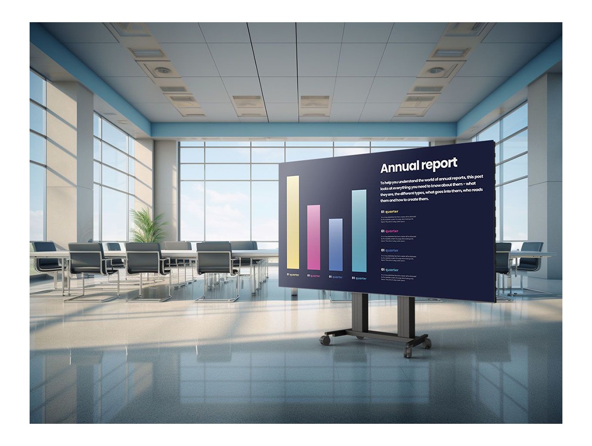 Based on high pillars made out of durable steel and aluminum, the possibilities for height positioning is good and it is possible to provide perfect viewing angle for both a sitting and a standing audience. The included wallmount installs directly to the M Pro Series – LG LED Floorstand 171”. This LED stand then forms a perfect solution that can be utilized for presentations, meeting rooms, trade shows, store or office entrances.