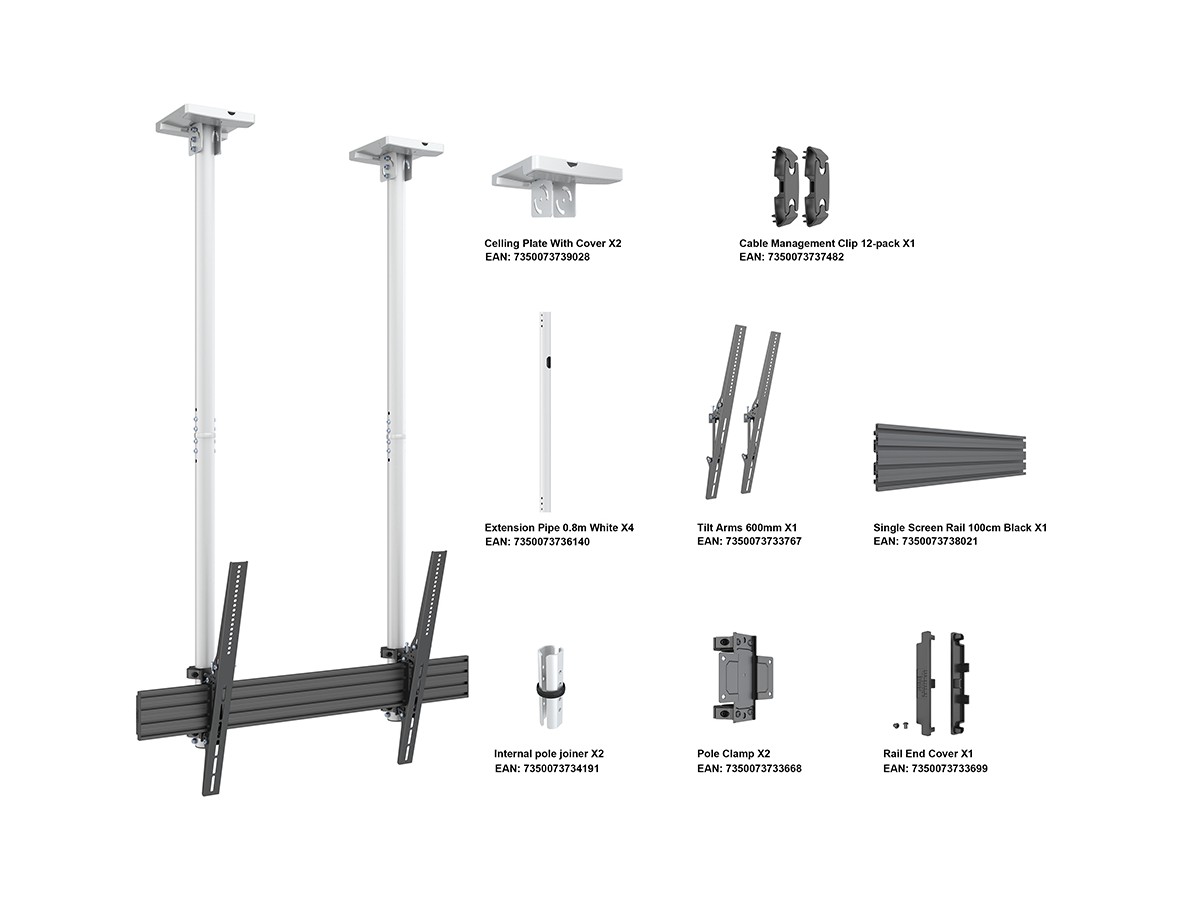 Product code:M Ceiling Mount Pro MBC1USD 900 White - Ceiling mount for LCD display, steel, 1.5m length, 1 screen, single side, tilt arms, Max load 135kg, VESA Max 900x600 - screen size: 40"-100" - white