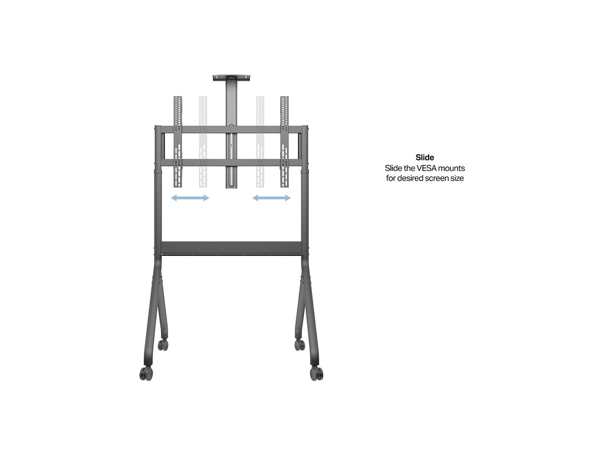 Product code:M Motorized Collaboration Floorstand 60"-100" - Stand for video conferencing system - screen size: 60" - 100" - max load: 90kg - VESA: 200x200-900x600mm - Camerashelf and Mediashelf included - Dark antracit grey