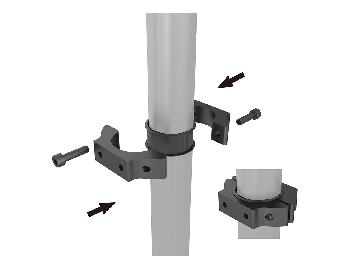 The Pro Series possibilities to adjust height of display and add details by individual choice is vast so that one can tailor each mount to its location and function. The Pro Series includes hardware so that a basic installation should not be a hassle.