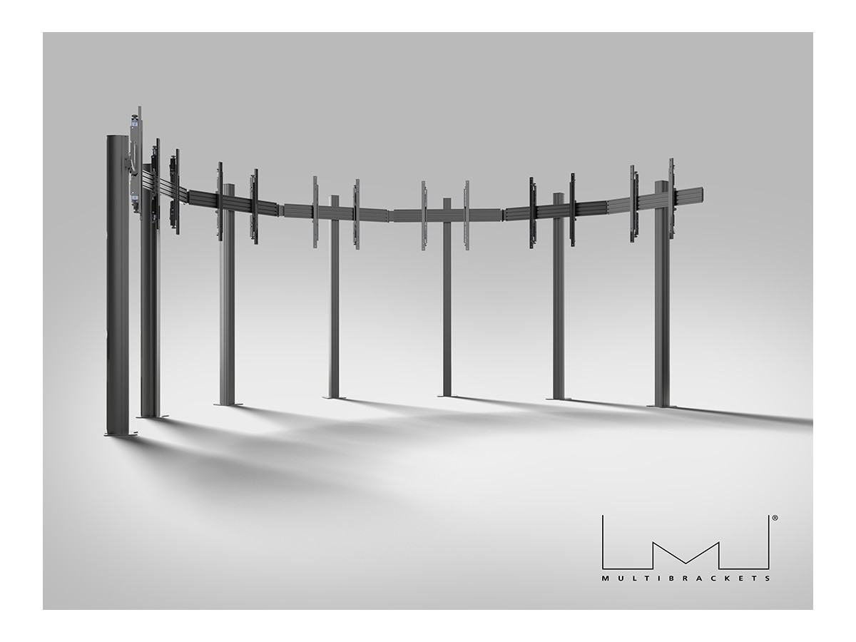 The Multibrackets® Pro Series modular video wall floormount can hold up to 7x 75” displays in a perfect 210° circular shape. The line up of professional Pro Series A/V line from Multibrackets was designed with the installer in mind. Modular, easy to configure, quick to install and simple to maintain. Developed together with installers we added close to unlimited flexibility and versatility. Based on the Pro Series ultra-flexible aluminum rail it is completely modular and has built in cable management throughout the entire solution to quicken installation and create an esthetic result worth the public eye. With its modular construction installers can tailor clients need in mind, dual displays side by side with a perfect position to each other. Added there are possibilities to change, update and reconfigure its design and if ideas change over time Pro Series creates a rock steady screen display solution aimed for the retail store, mall or any other public area. These VESA arms are designed to mount medium to large sized screens onto the horizontal mounting rails. The arms are micro adjustable with Z, Y and Z adjustment possibilities for the closest possible positioning.