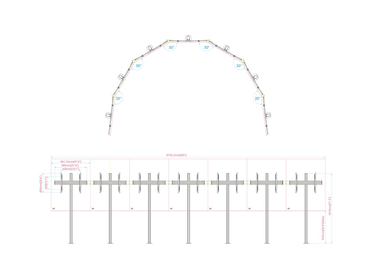 A Floormount that can hold for 7x 75” in a 210° circular shape