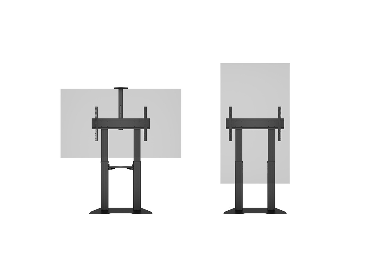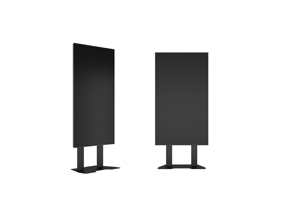 The M Public Floorbase Dual Pillar 180 HD can be used with screens in a standard landscape mode. It can be used with or without shelf (included) and a camera holder (included).