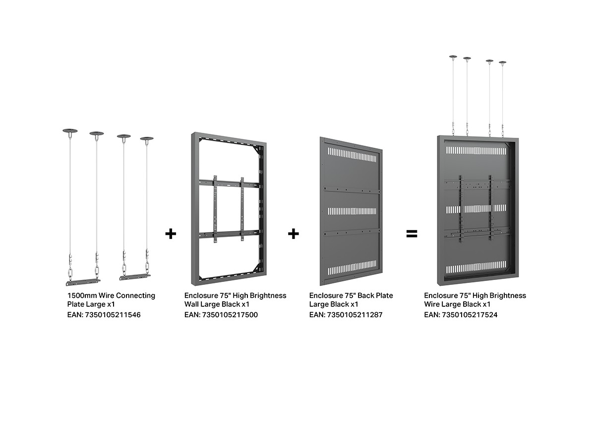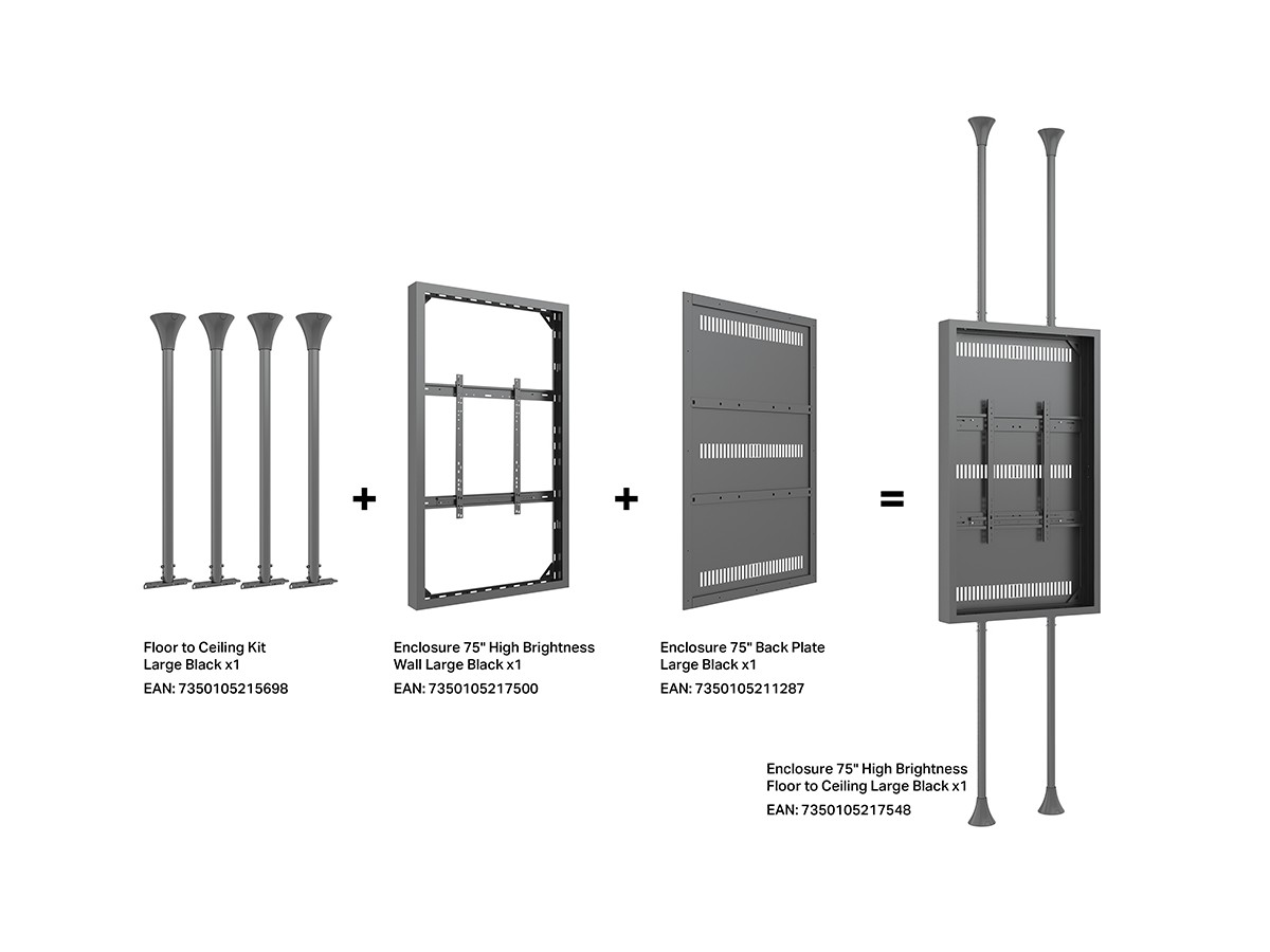 This Universal 75" High Brightness Casing/ Enclosure was designed to blend in perfectly in most environments. Added its ingenious design makes many smart options available right away or after time, mounting solutions with wire function, floor to ceiling or floor stand and ceiling mounting is available.