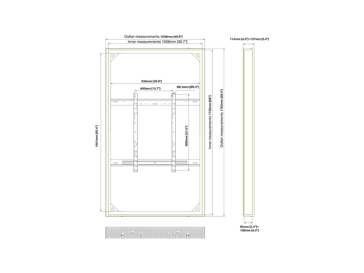 This clean styled black Pro Series Enclosure 75” brings new flexibility to the digital signage enclosure market while maintaining a sleek aesthetic to complement a variety of environments. A depth-adjustable exterior frame allows for a variety of displays to be used. Reversible hinges help avoid installation and service obstructions, and the exclusive design. Depth-adjustable exterior frame. Unparalleled service and maintenance access. Integrated passive cooling vents with active thermal management options. Designed to compensate for uneven walls, keeping front of frame flat. Tamperproof security hardware protects technology investments.