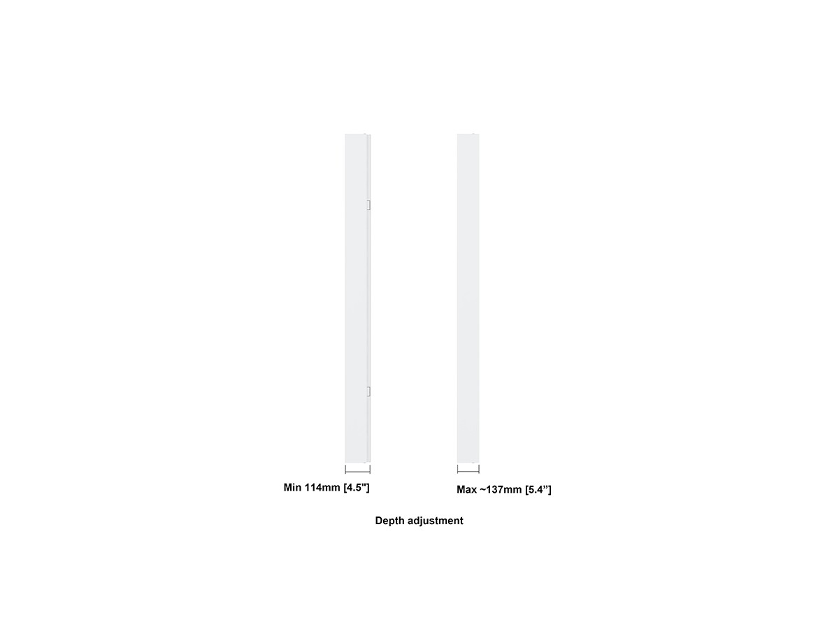 This clean styled White Pro Series Enclosure 75” brings new flexibility to the digital signage enclosure market while maintaining a sleek aesthetic to complement a variety of environments. A depth-adjustable exterior frame allows for a variety of displays to be used. Reversible hinges help avoid installation and service obstructions, and the exclusive design. Depth-adjustable exterior frame. Unparalleled service and maintenance access. Integrated passive cooling vents with active thermal management options. Designed to compensate for uneven walls, keeping front of frame flat. Tamperproof security hardware protects technology investments.