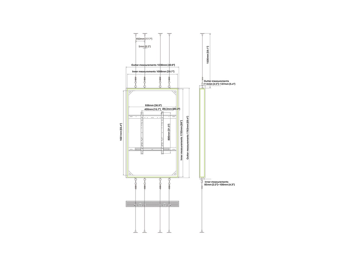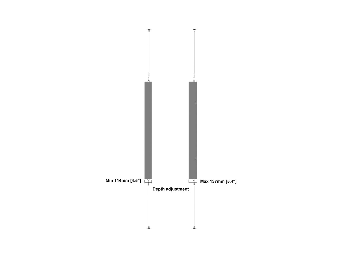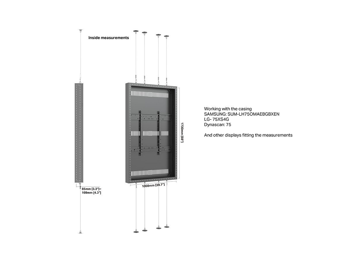 The M Pro Series Enclosure 75" High Brightness Floor to Ceiling Wire Large Black. A well-designed casing /enclosure with hanging wires. Creating a minimalistic look and possible to mount in both Portrait or Landscape position this casing from Multibrackets® is one of the most versatile to date. The casing includes after adjustment possibilities and can be used for most brands of signage displays on the market. With a smart thermal management, this solution can fit more brands as well as creating thermal management second to none. Wire diameter 5mm.
