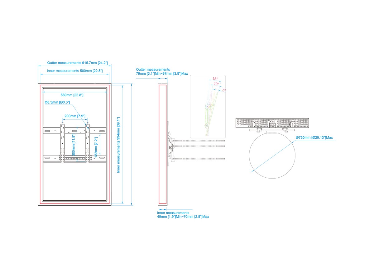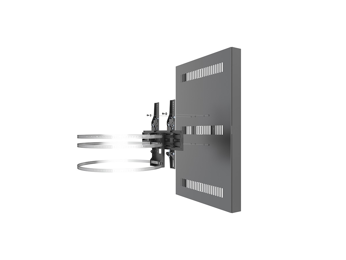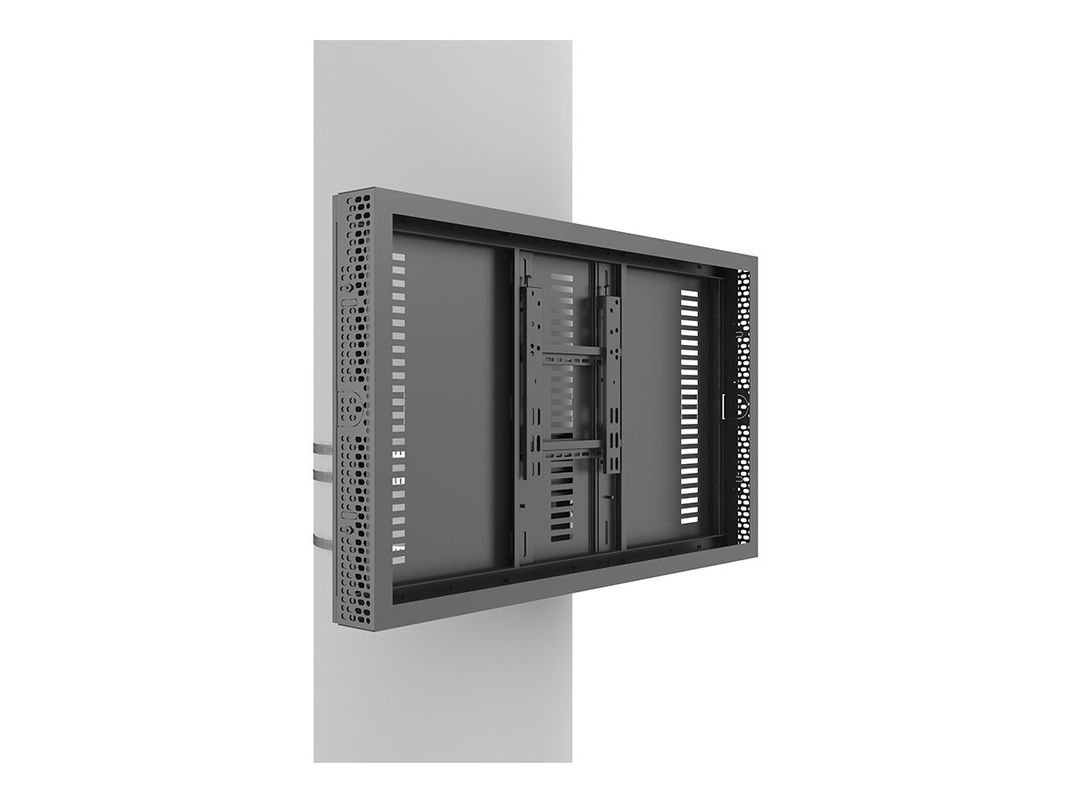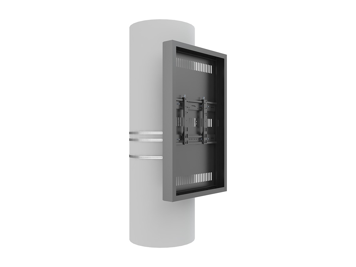 This clean styled product brings new flexibility to the digital signage enclosure market while maintaining a sleek aesthetic to complement a variety of environments and different diameters of columns. A depth-adjustable exterior frame allows for a variety of displays to be used. Reversible hinges help avoid installation and service obstructions, and the exclusive design. Depth-adjustable exterior frame. Unparalleled service and maintenance access. Integrated passive cooling vents with active thermal management options. Designed to compensate for uneven walls, keeping front of frame flat. Tamperproof security hardware protects technology investments. Tool-free on-wall storage with Middle Atlantic's Lever Lock technology.