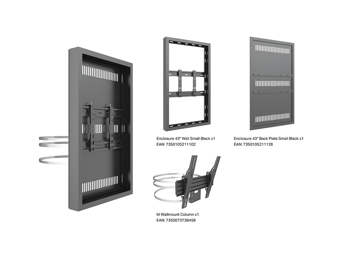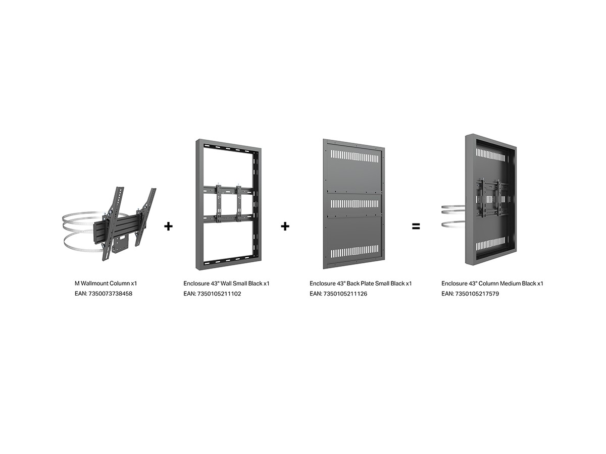 The M Pro Series Enclosure 43" Column Medium Black. A well-designed casing /enclosure. Creating a minimalistic look and possible to mount in both Portrait or Landscape position this casing from Multibrackets® is one of the most versatile to date. Choose between screen sizes and colors. The casing includes after adjustment possibilities and can be used for most brands of signage displays on the market. With a smart thermal management, this solution can fit more brands as well as creating thermal management second to none.