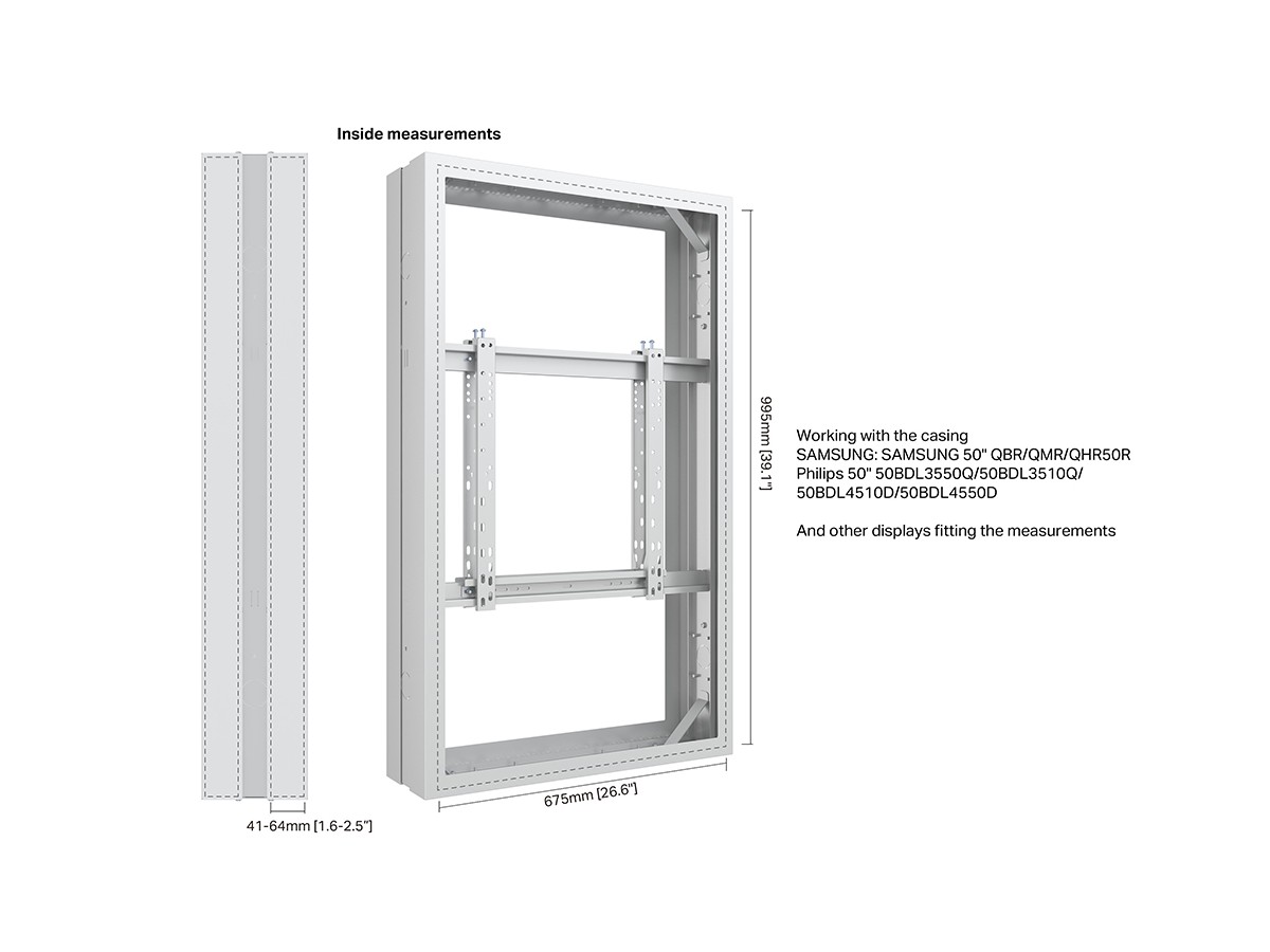The M Pro Series Enclosure 50" Medium B2B White. A well-designed casing /enclosure. Creating a minimalistic look and possible to mount in both Portrait or Landscape position this casing from Multibrackets® is one of the most versatile to date. Choose between screen sizes and colors. The casing includes after adjustment possibilities and can be used for most brands of signage displays on the market. With a smart thermal management, this solution can fit more brands as well as creating thermal management second to none.
