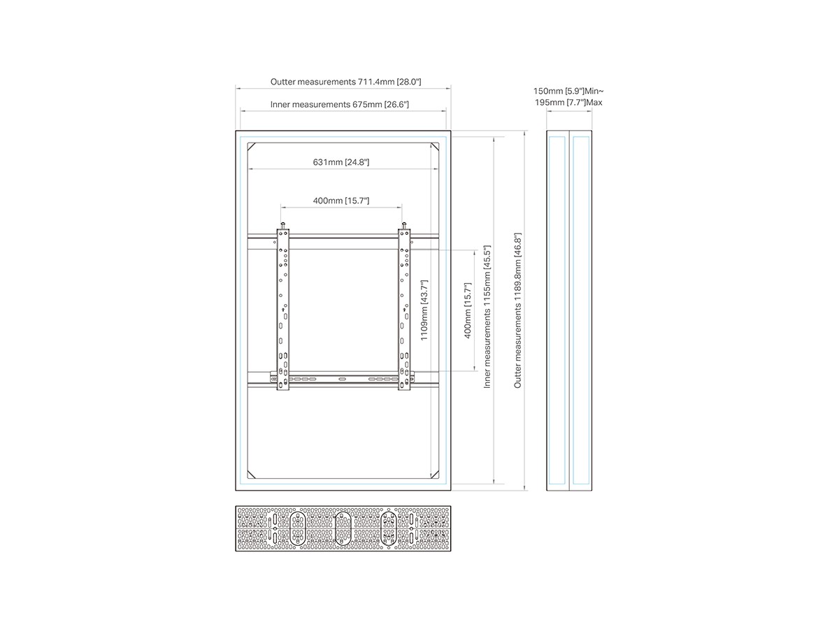 This clean styled Pro Series Enclosure brings new flexibility to the digital signage enclosure market while maintaining a sleek aesthetic to complement a variety of environments. A depth-adjustable exterior frame allows for a variety of displays to be used. Reversible hinges help avoid installation and service obstructions, and the exclusive design. Depth-adjustable exterior frame. Unparalleled service and maintenance access. Integrated passive cooling vents with active thermal management options. Designed to compensate for uneven walls, keeping front of frame flat. Tamperproof security hardware protects technology investments.