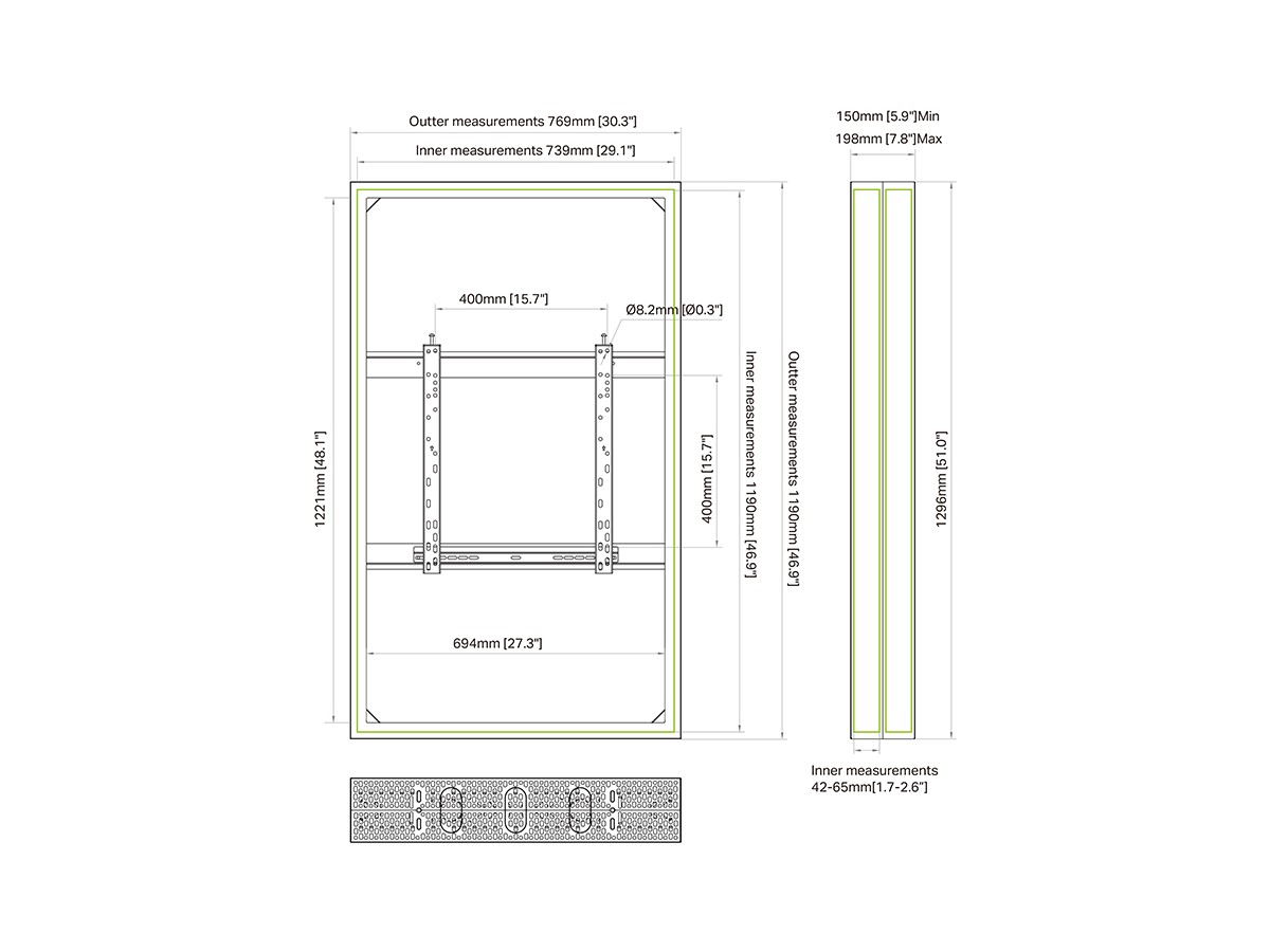 | Installation: | Samsung 65" QBR/QMR/QHR65R LG 65" 65UH5F Philips 65" 65BDL3550Q/65BDL3510Q/65BDL4510D/65BDL4550D Sony FW-65BZ40L BenQ 6502S + other 65" displays not model specified here (check measurements) |