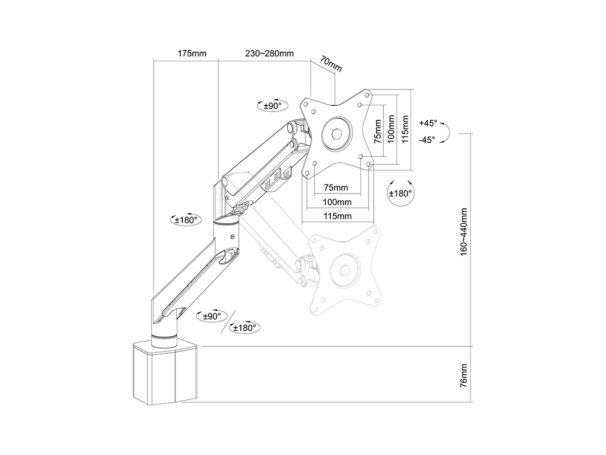 | Tilt arm adjust: | - 30° ~ + 65° |