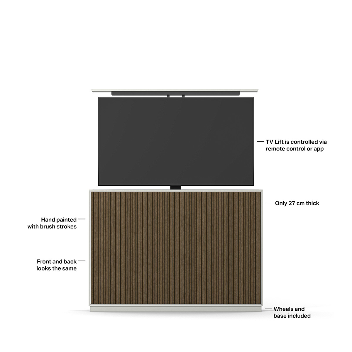 Product code:M AV Cabinet TV-Lift 55” Slimline White Walnut - Cabinet for TV´s and displays - up to 55" - Pop up TV lift solution - remote control included - supports mobile phone app - VESA 200x200 - 600x400 - maxload 50kg - black