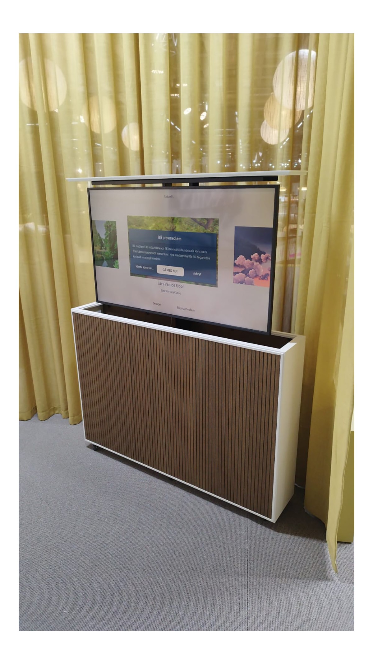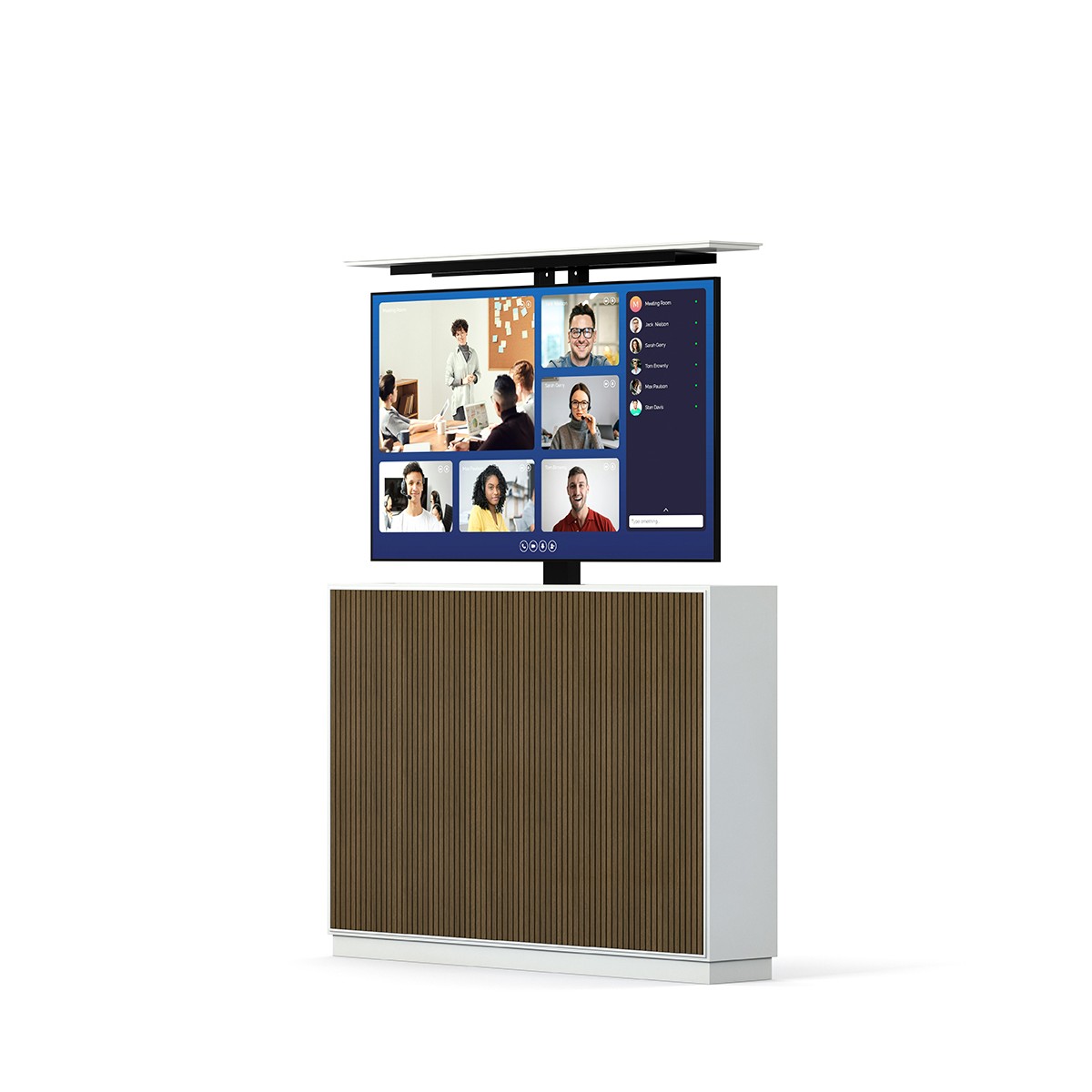 Combine this solution with a videobar and your computer to create a versatile meeting room station compatible with Teams, Skype, Zoom, and other video communication software. This complete pop-up TV lift solution is perfect for almost any situation, offering ease of use and significant cost savings by being functional in multiple locations. You'll always be ready to meet wherever you are within the building.