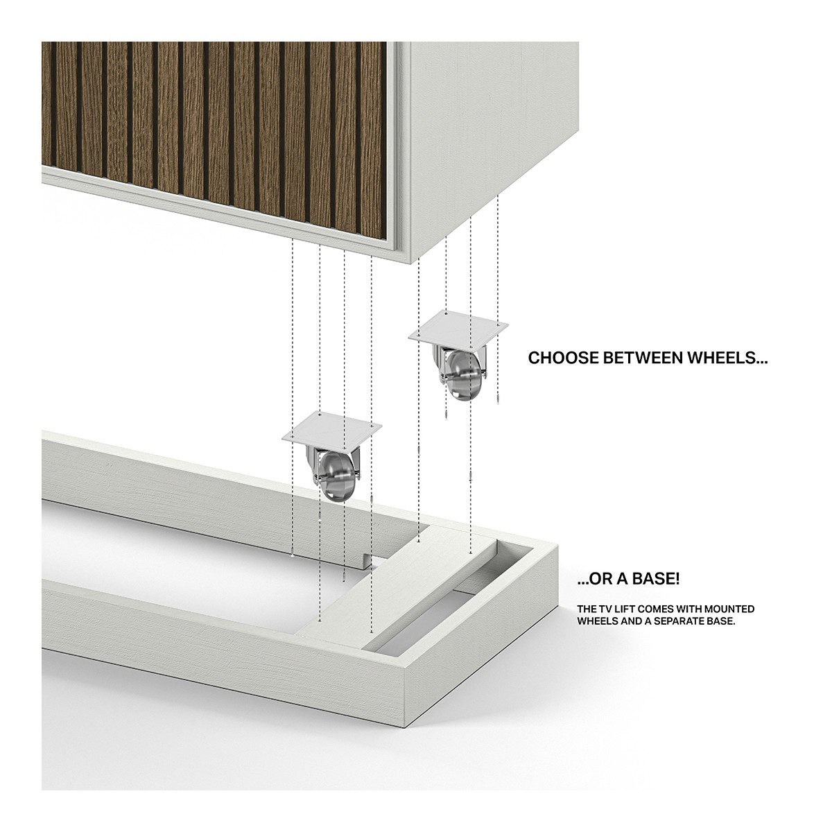 Use it with the included base or wheels for added versatility. The built-in wheels allow you to easily move the cabinet from room to room, or even out onto the patio. If you prefer a stationary setup, the base can be used to conceal the wheels for a seamless look.