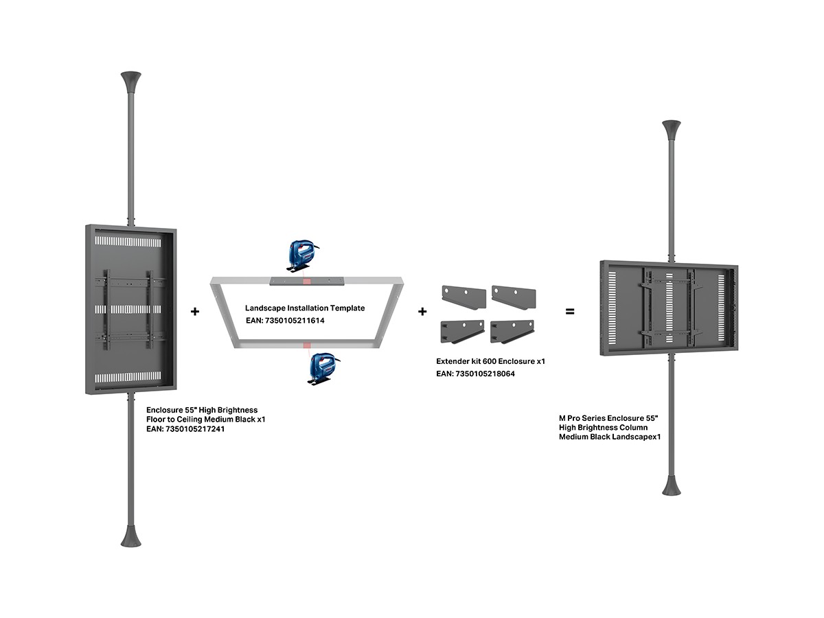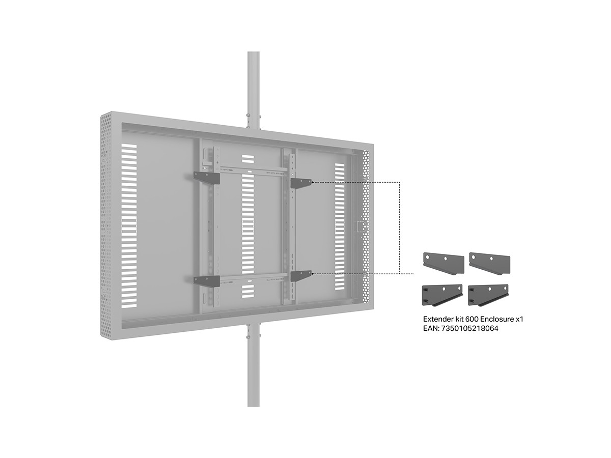 If you need to extend the VESA spec of the M Pro Series Enclosures from 400x400 to 600x400 this kit might be needed. Made out of a steel structure, these extenders are made for VESA 600X400 and painted with epoxy powders.