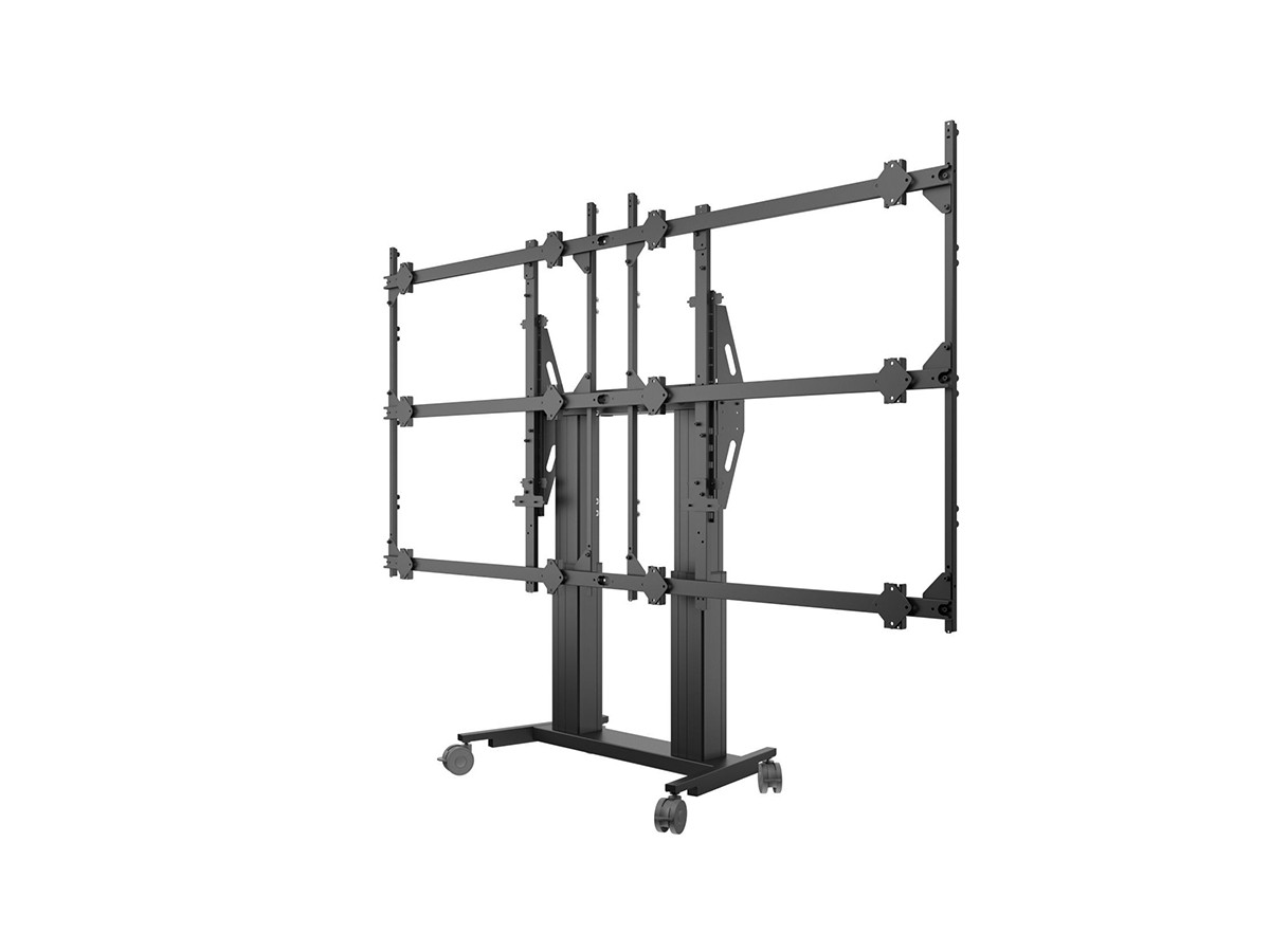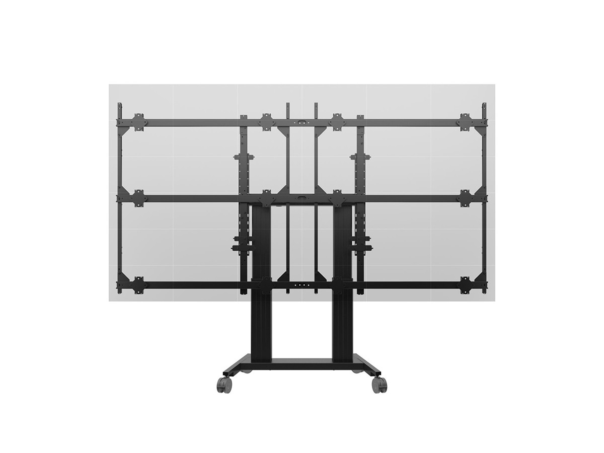 Multibrackets® Pro Series modular video wall floormount with loads of useful features that eliminate the need for extra tools and hardware, while ensuring your videowall mount application is both safe and its outlook professional.