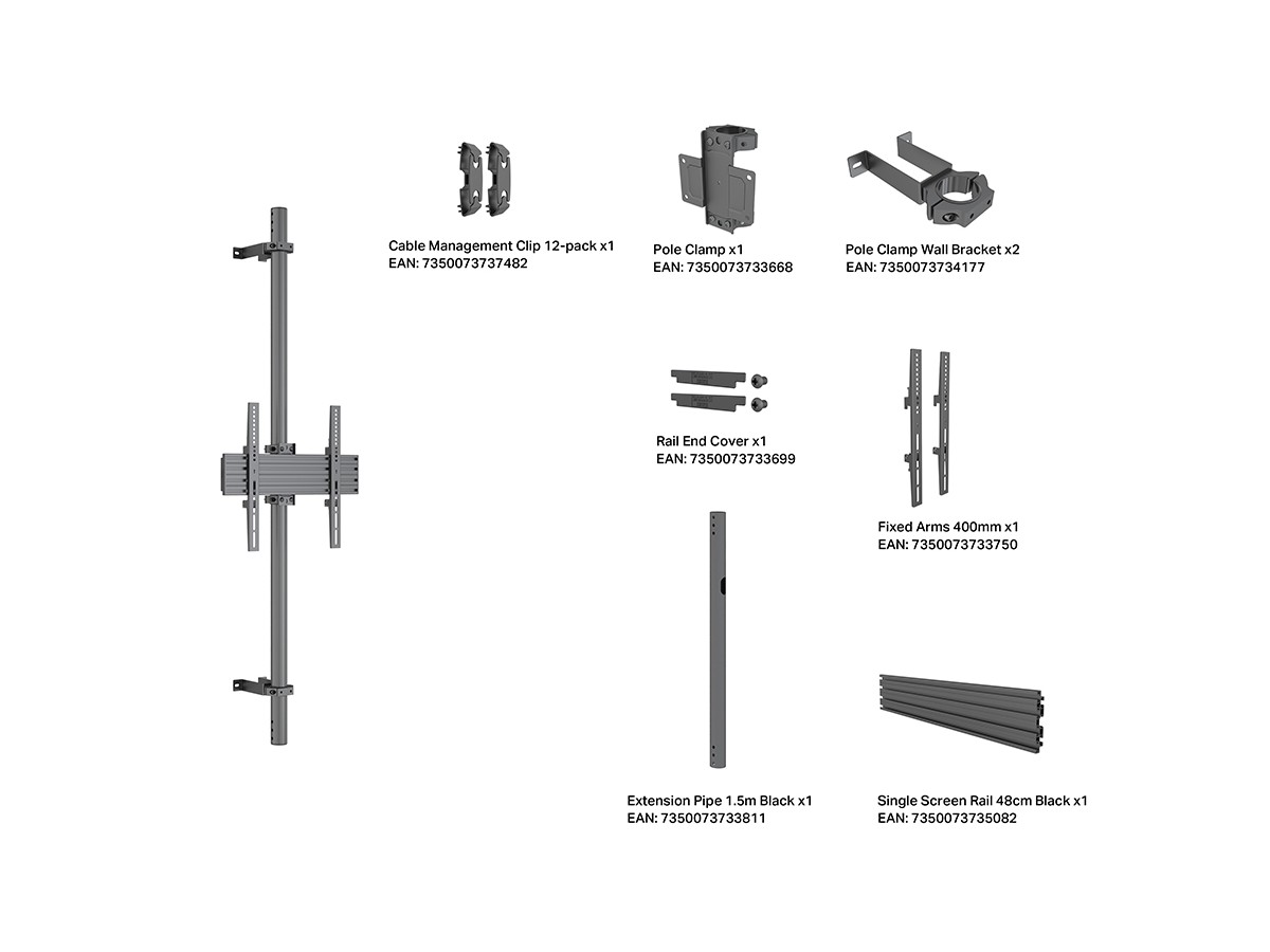 Product code:M Wall to Wall Mount Pro MBWW1U – Wall to Wall mount for displays, steel, 1,5m length, 1 screen, single side, fixed arms, VESA max 400x400 - screen size: 40"-65" - black