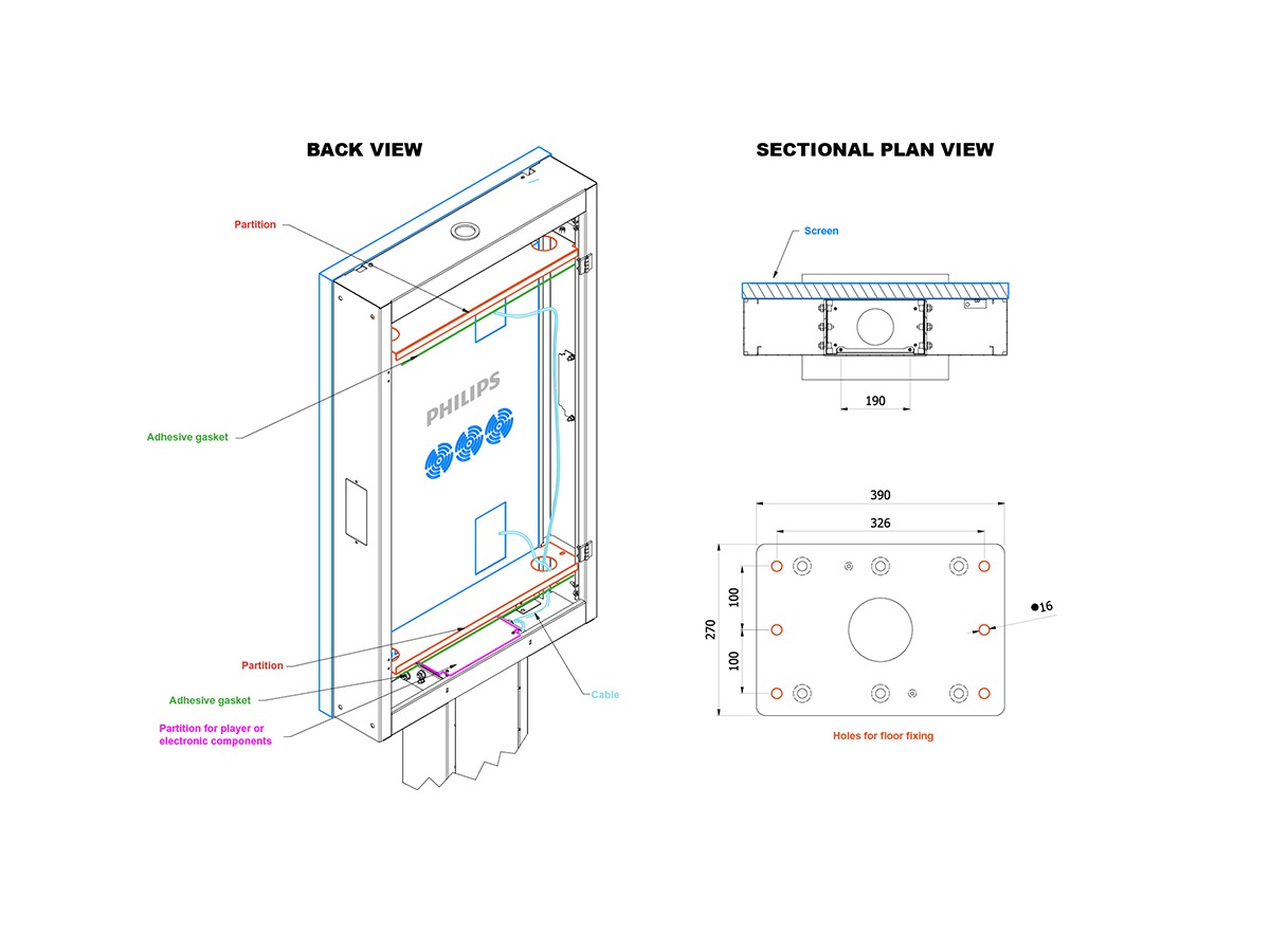 Product code:M Totem Pro Single 55BDL60 - Totem for Philips 55BDL60– portrait - screen size: 55"- max load: 63kg - VESA: Philips Proprietary - black – Outdoor 100% anti corrosion - anti theft