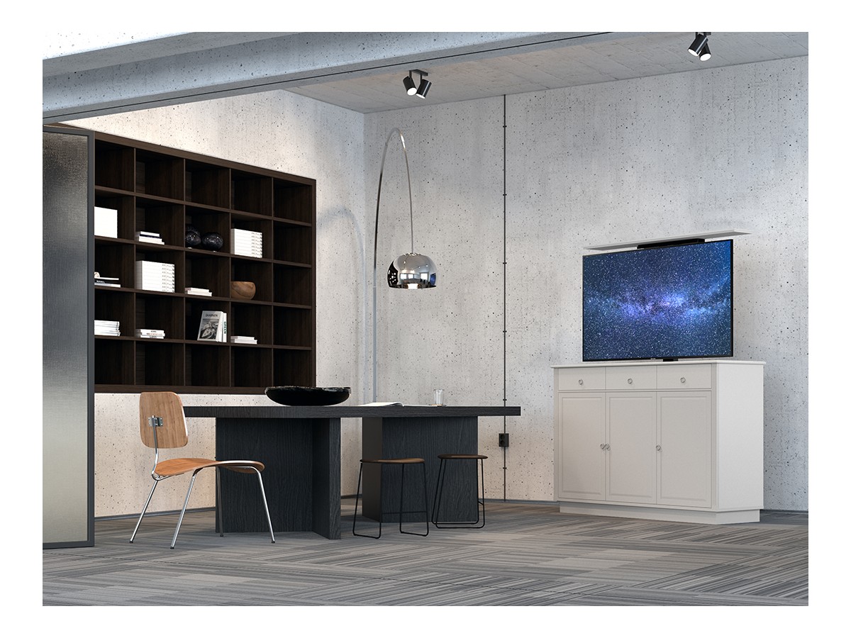 The innovative furniture concept gives you a comfortable and modern piece of furniture that blends into your office, meeting room or home decor and at the same time gives you the opportunity to easily hide your TV when it's not in use.