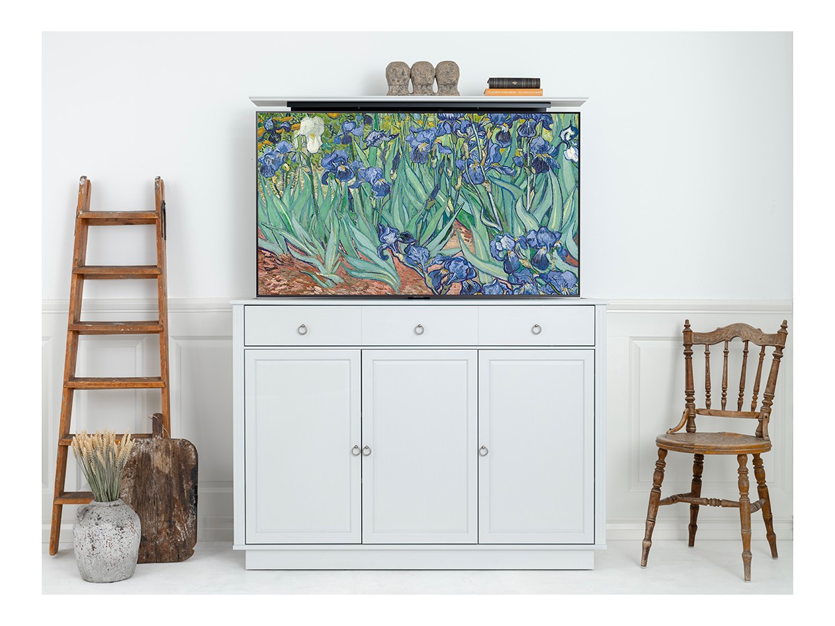 When using a TV lift inside a piece of furniture, it is important to have a cover to cover your TV when not in use. The sideboards have a lid that is placed on a metal plate, mounted on the TV lift. The lid's magnets make it easy to remove when needed, while keeping it in place when needed.