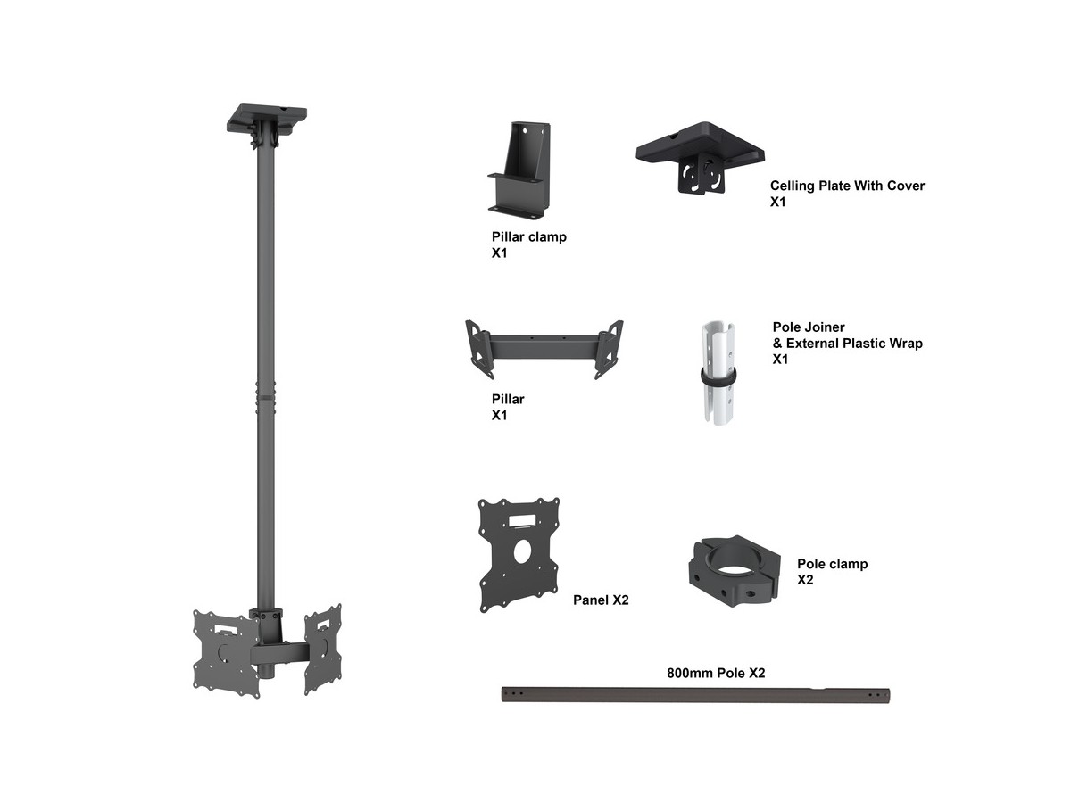 Product code:M Ceiling Mount Pro Dual 32BDL-4050D - Ceiling mount for LCD display, steel, 1.5m length, 2 screens, dual side, VESA Max 200x200 - screen size: 17"-32" - black