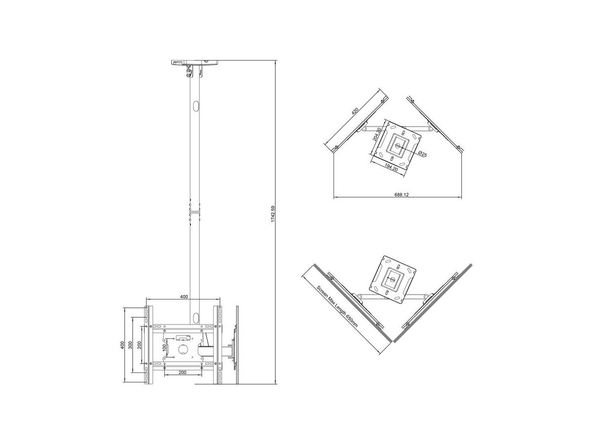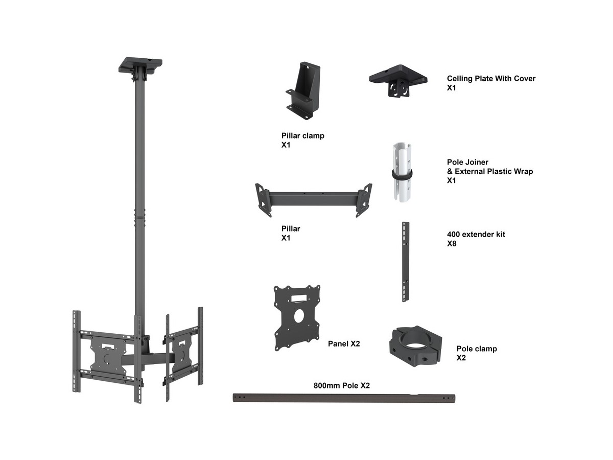 Product code:M Ceiling Mount Pro Dual 49BDL-4050D - Ceiling mount for LCD display, steel, 1.5m length, 2 screens, dual side, VESA Max 400x400 - screen size: 32"-49" - black