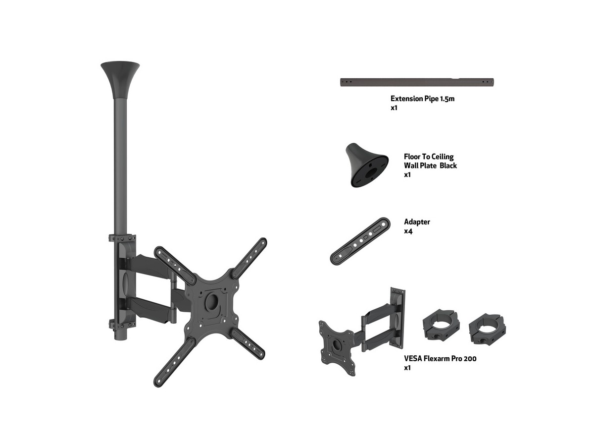 Product code:M Ceiling Mount Pro MBC1F - Ceiling mount for LCD display, steel, 1.5m length, 1 screen, single side, tilt arms, VESA 100x100 to 400x400 - screen size: 17"-42" - black