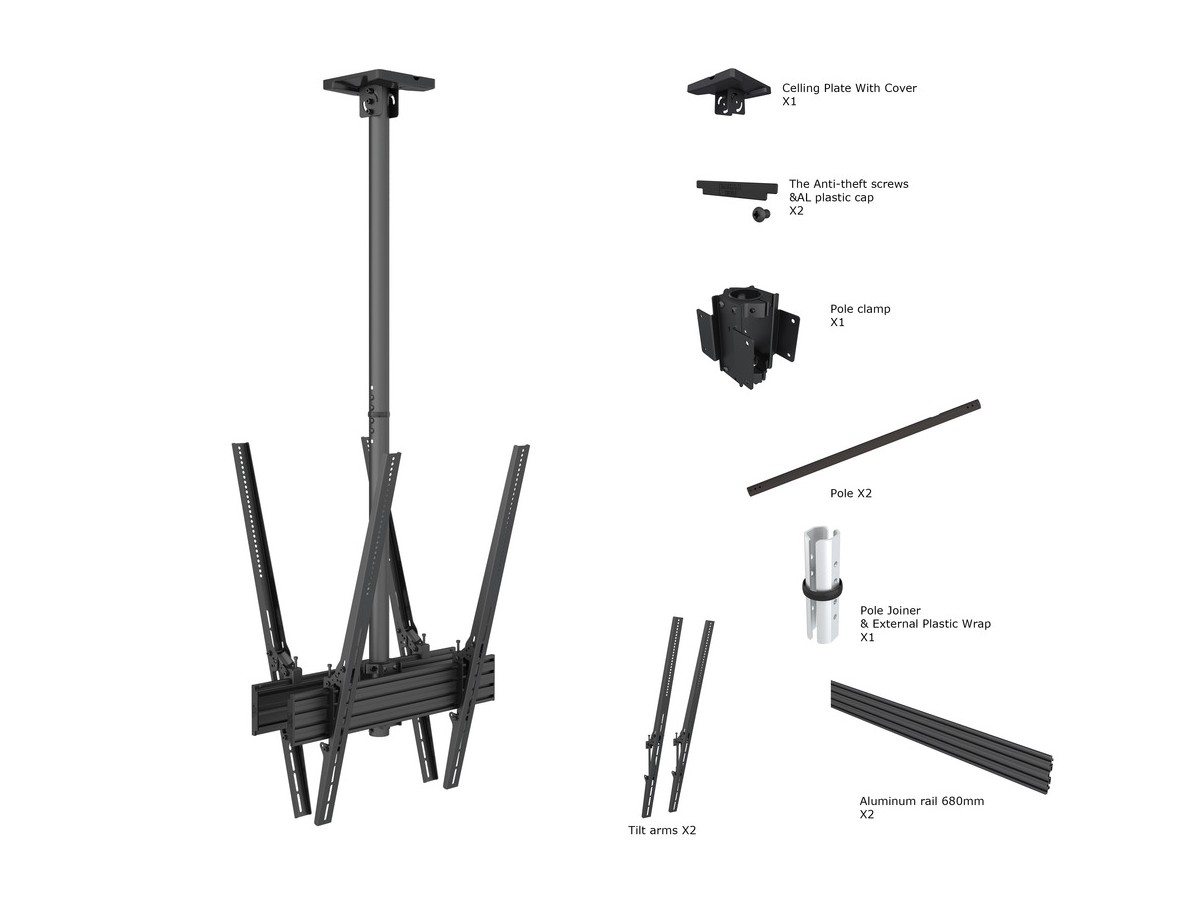 Product code:M Ceiling Mount Pro MBC1UX2PHD - Ceiling mount for LCD display, steel, 1.5m length, 2 screen, dual side portrait mode, tilt arms, max load 90kg, VESA max 600x900 - screen size: 40"-75" - black