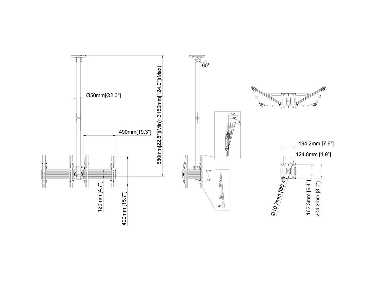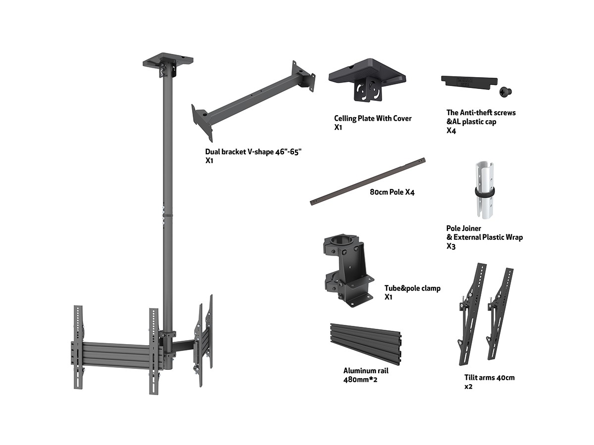 Product code:M Ceiling Mount Pro MBC2UPV 400 - Ceiling mount for displays, Modular design, steel, 3m length, 2 screen, tilt arms, Max load 30kg per screen, VESA 100x100 - 400x400 - screen size: 46"~65" - black