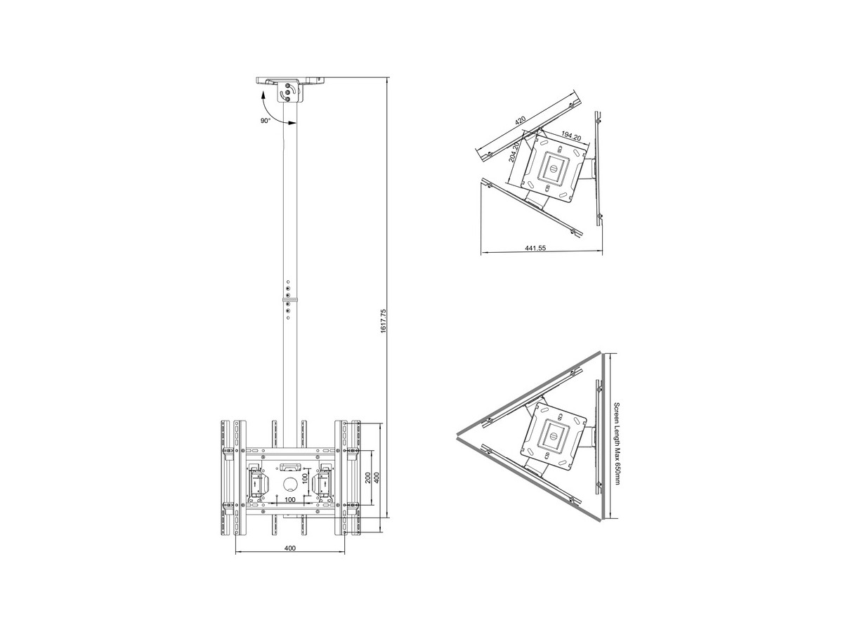 Product code:M Ceiling Mount Pro Triple 49BDL-4050D - Ceiling mount for LCD display, steel, 1.5m length, 3 screens, triple side, VESA Max 400x400 - screen size: 32"-49" - black