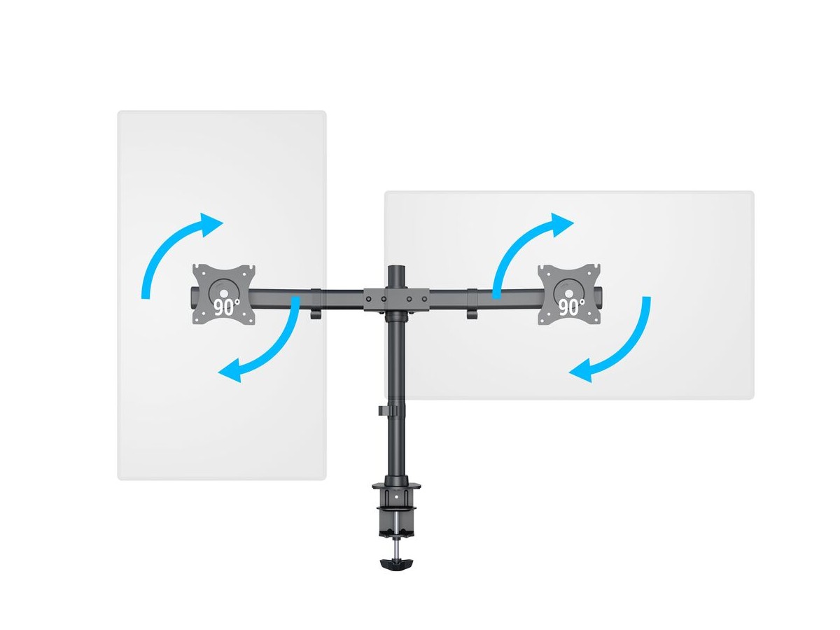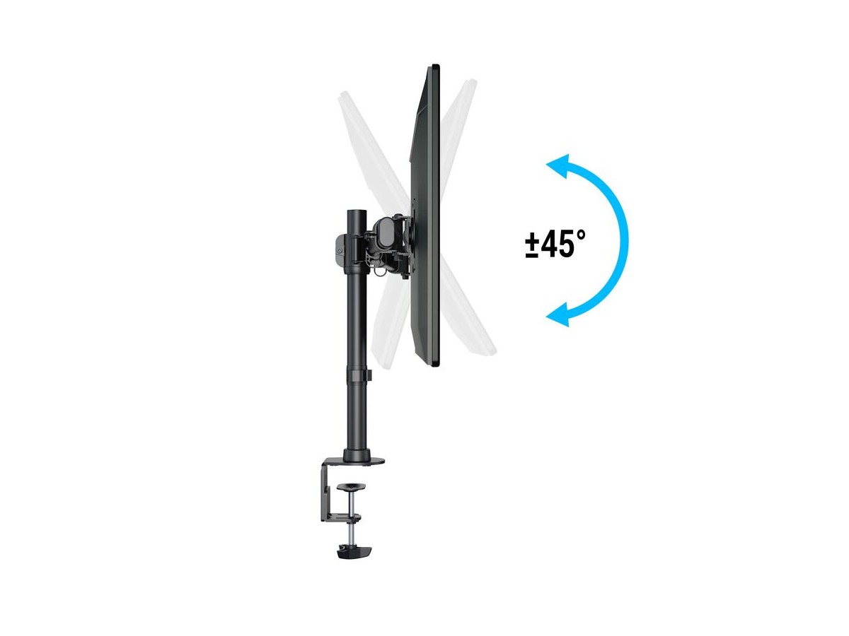 - Adjust to support an ergonomically correct working position; sit more comfortably at your desk while reducing neck, eye and back strain, extend or retract monitor arm; rotate monitor to landscape or portrait mode