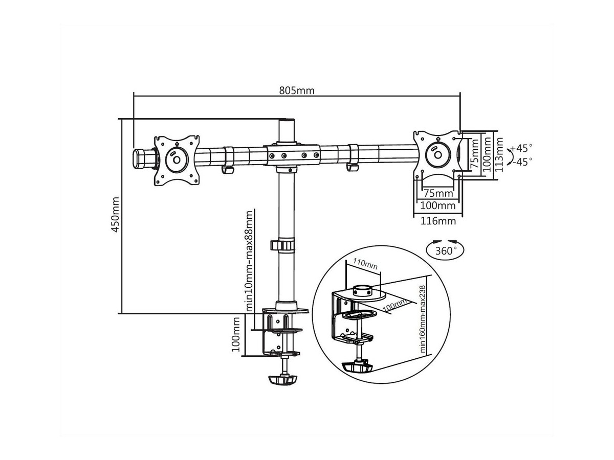 | Adjustable height from table top to VESA plate center: | 100 - 400mm |