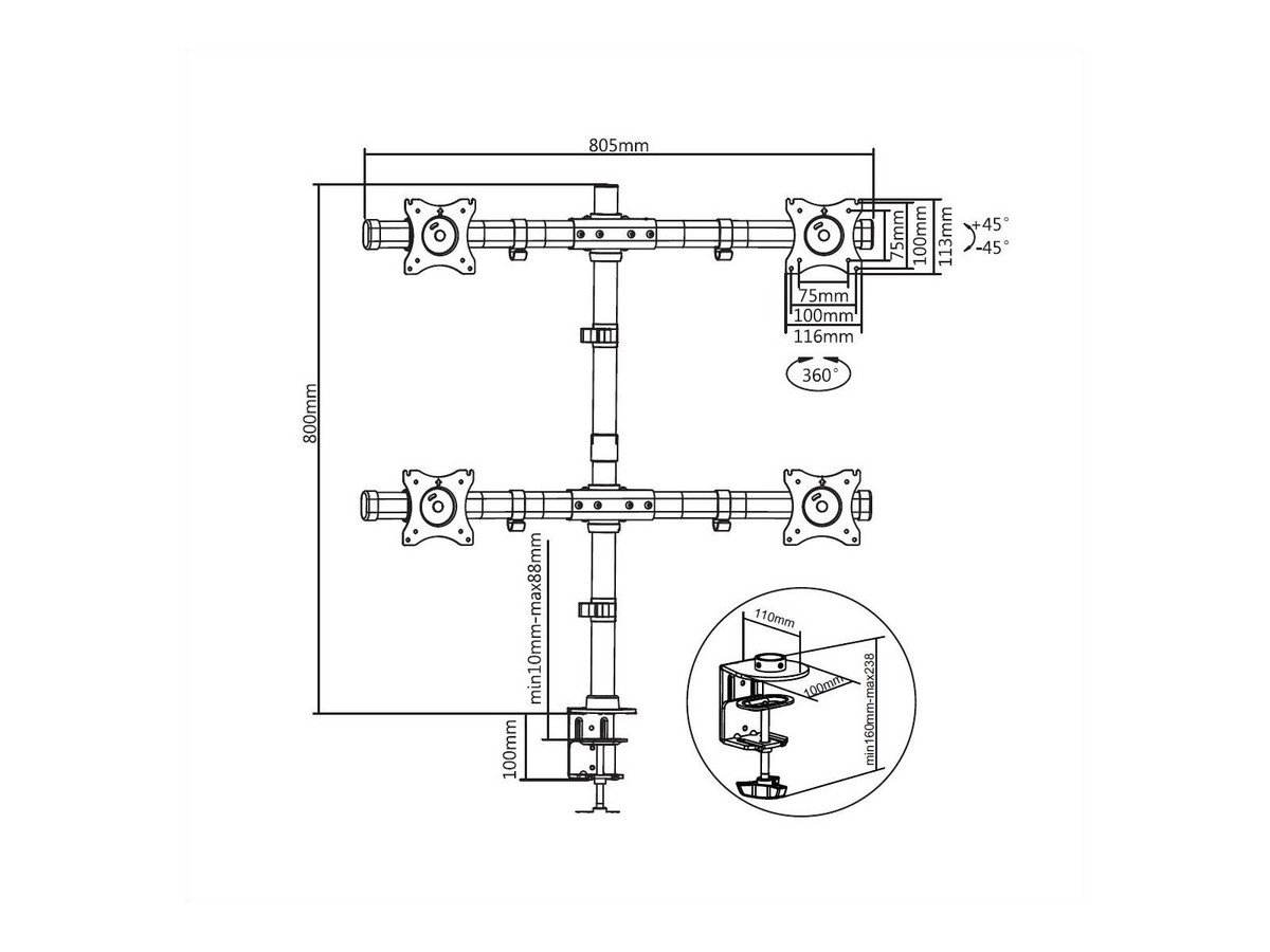 | Adjustable height from table top to VESA plate center: | 100 - 750mm |