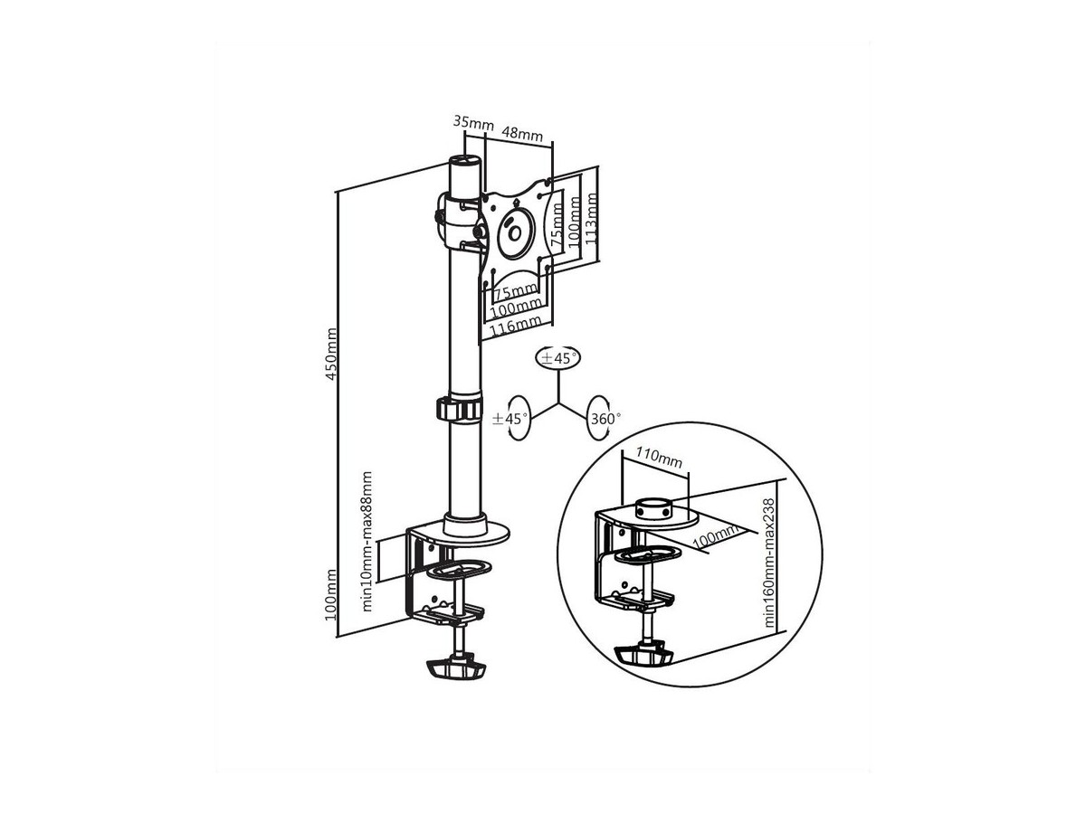 | Adjustable height from table top to VESA plate center: | 100 - 450 mm |