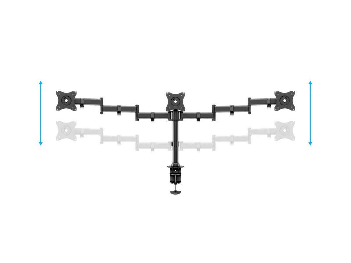 Product code:Multibrackets M Deskmount Basic Triple - Mounting kit ( triple-screen mounting arm ) for LCD display - black - screen size: 15" - 27" - table mount