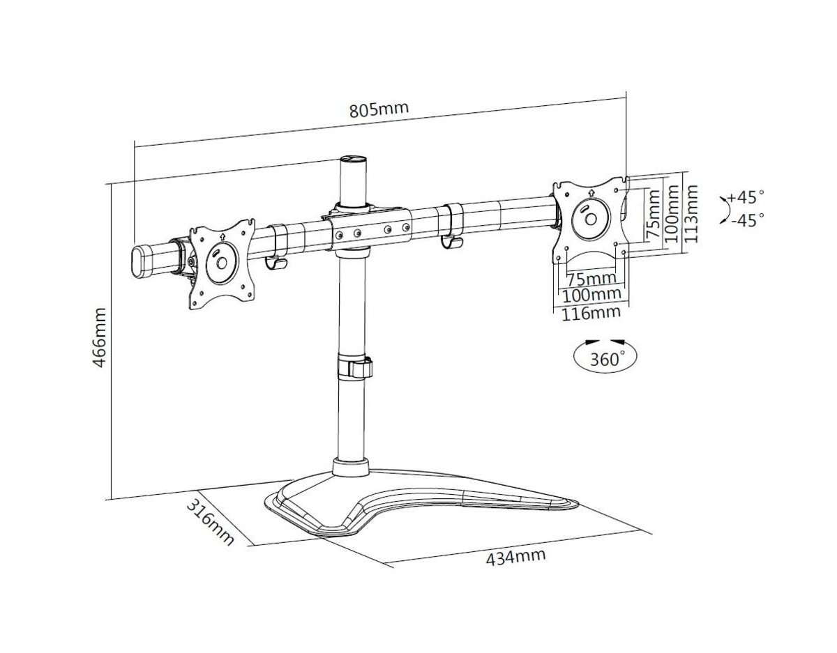 - VESA 75/100 fits most 10"-27" monitors