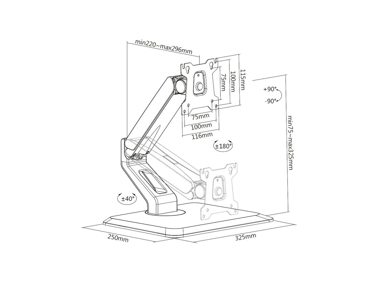 - Generous height adjustment for customized, ergonomic viewing of the screen