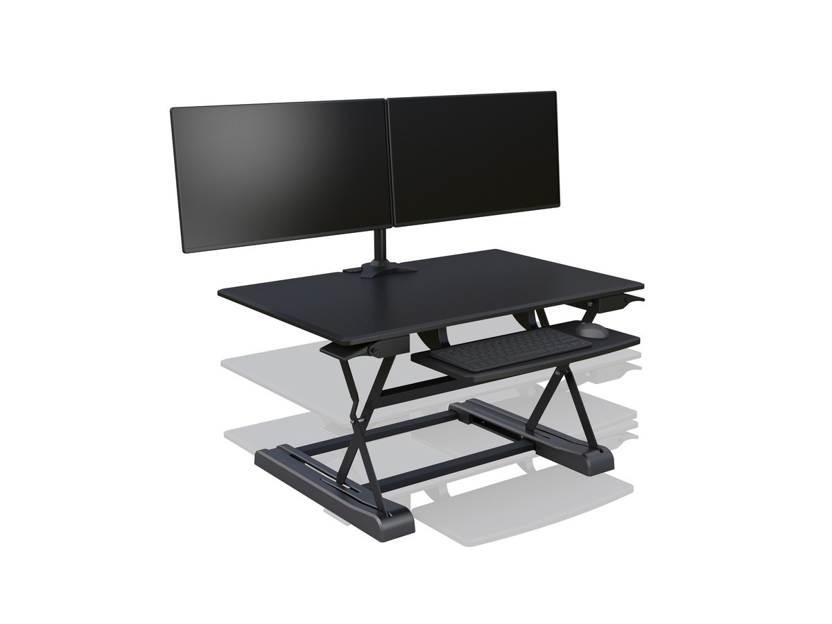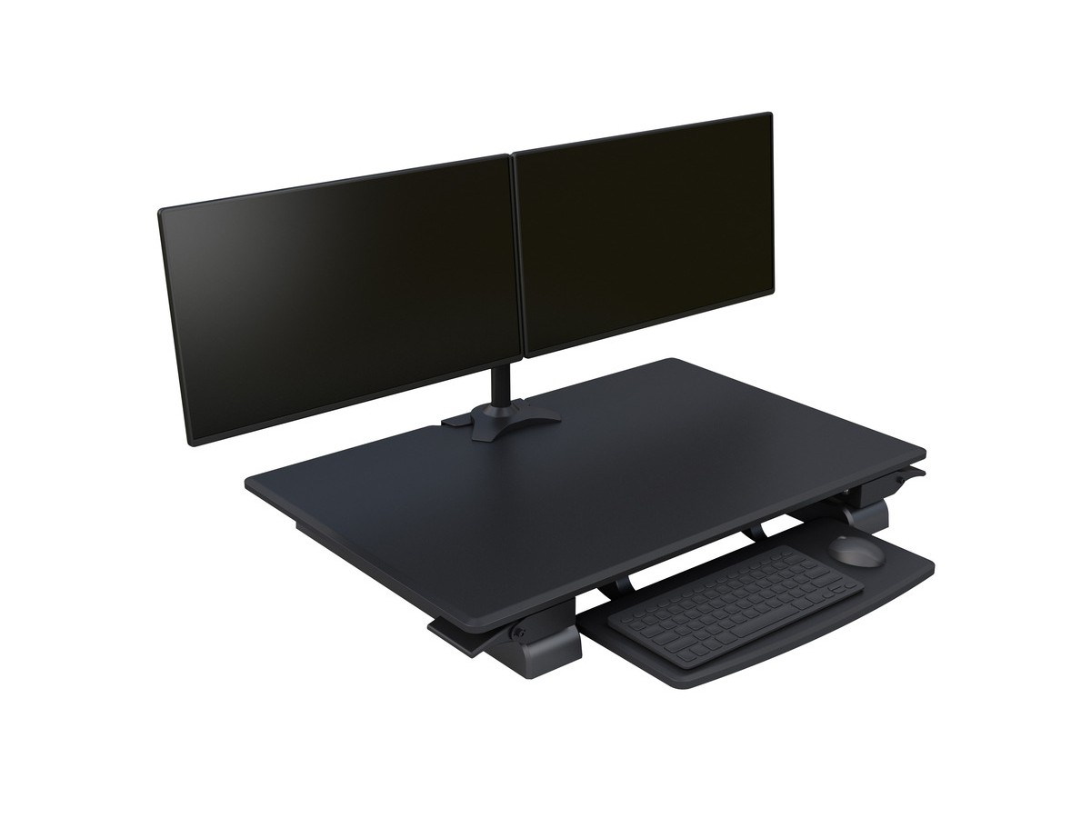 Product code:M Deskstand Workstation II - Sit and Stand works space, 915 x 600mm, height adjustable 370 mm, keyboard tray 525x190 mm - black