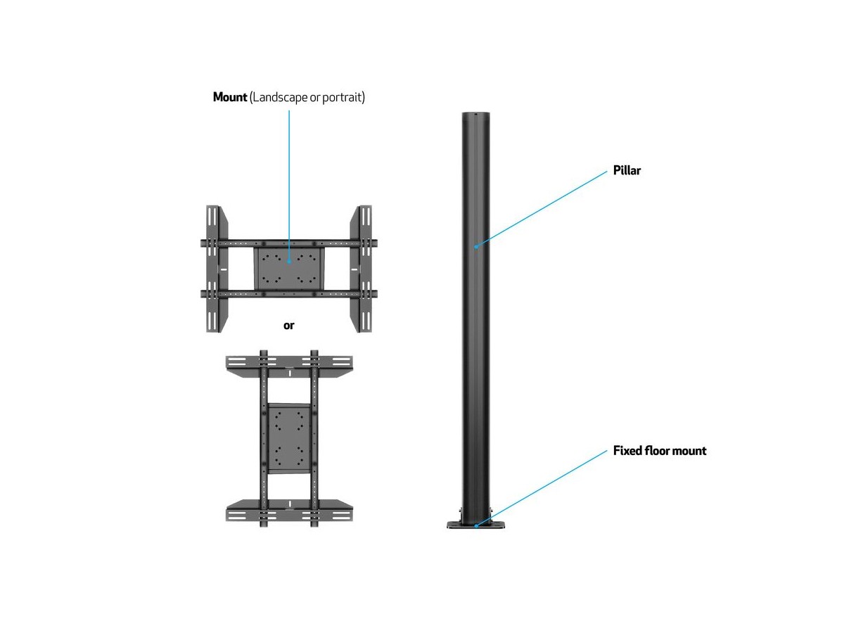 | Accessories: | Works with most M Public Display Stand Accessories. |
