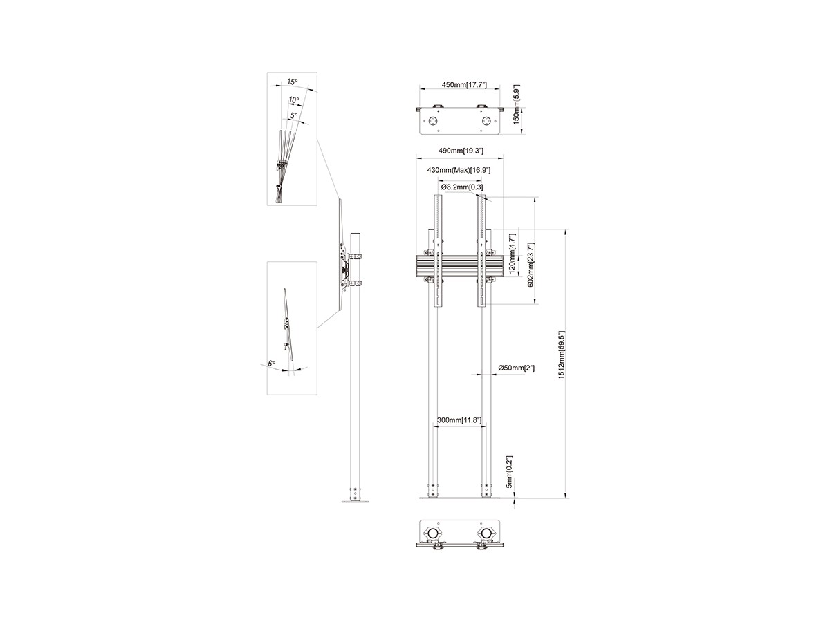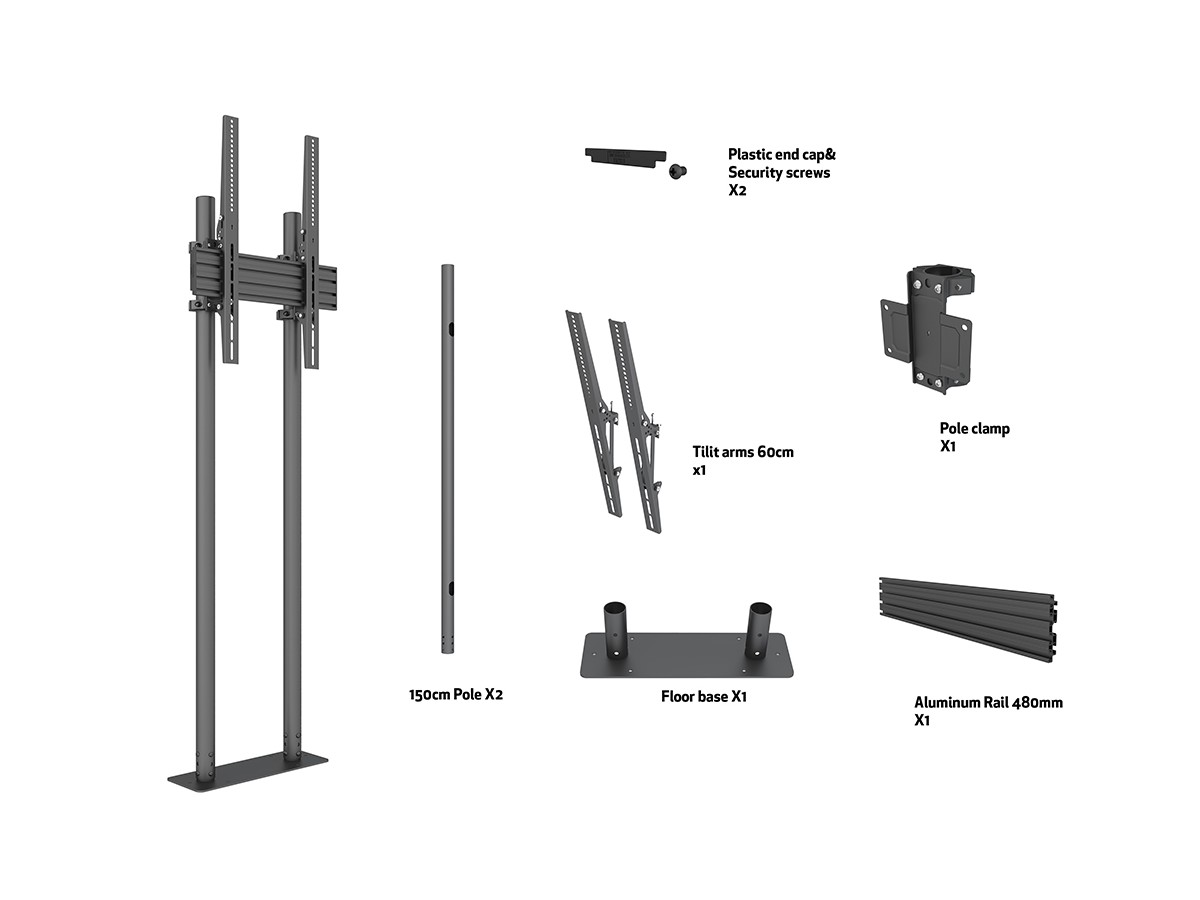 Product code:M Dual Pole Floormount Pro 65"-90" - Floorstand mount for LED display, steel, 1.5m length, 1 screen, single side, VESA Max 400x600 - screen size: 65"-90" - black