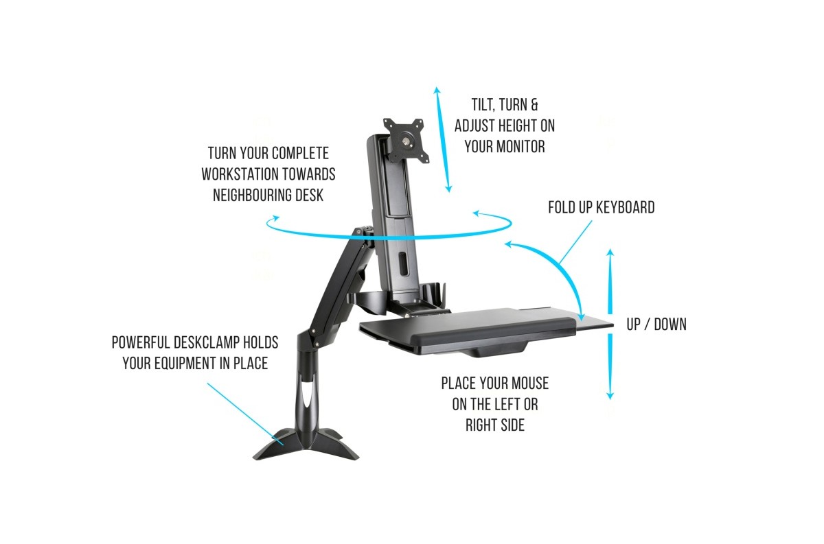 Product code:Multibrackets M Flex Desk Workstation - Mounting kit for LCD displays and keyboards – white and silver - screen size: 15" - 27" – desk mounted