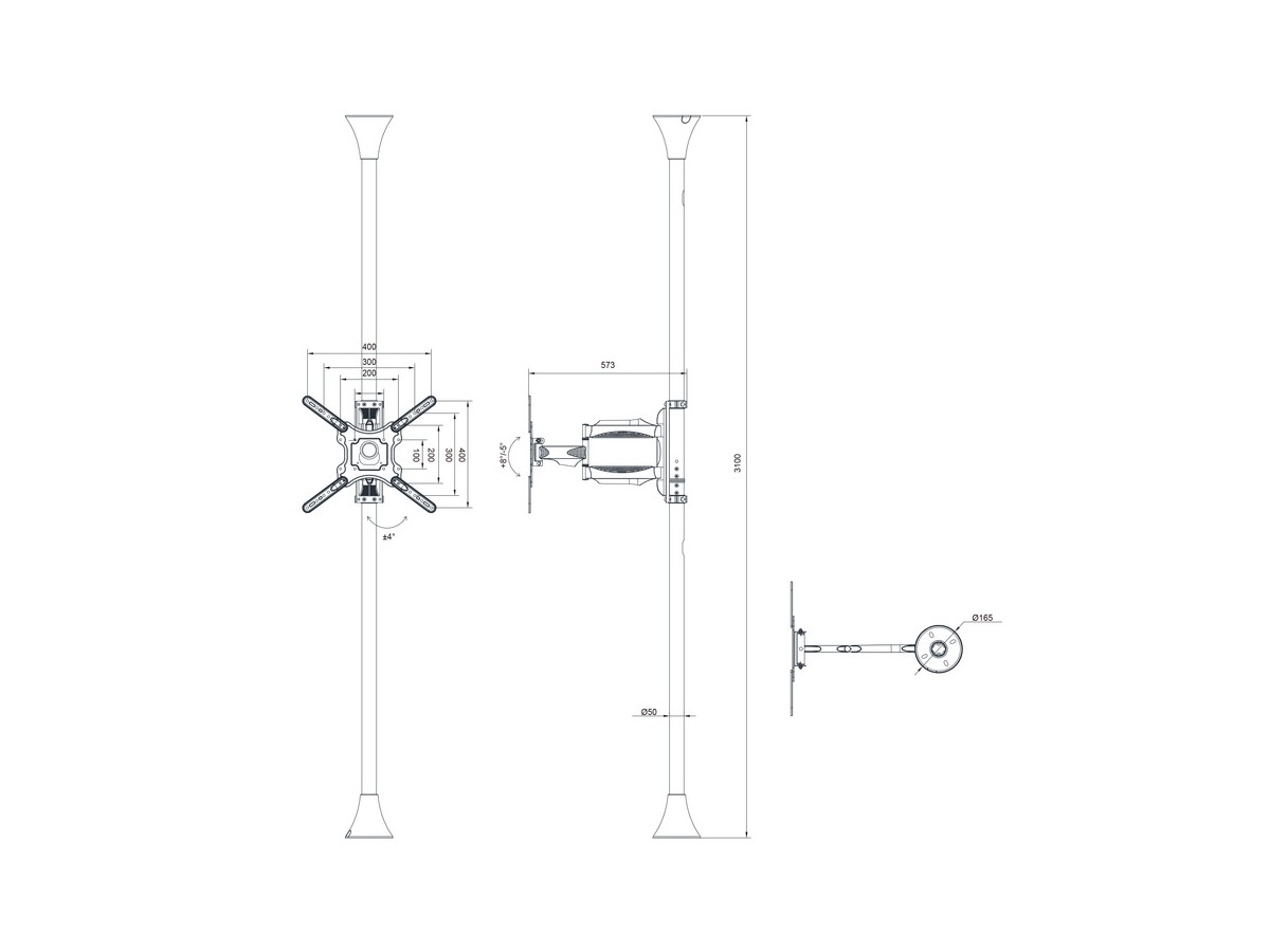 | Pillar length: | Min: 580mm to Max: 1550 mm from ceiling to VESA plate center Extension pipes: 3m (1500mm*2pcs) included |