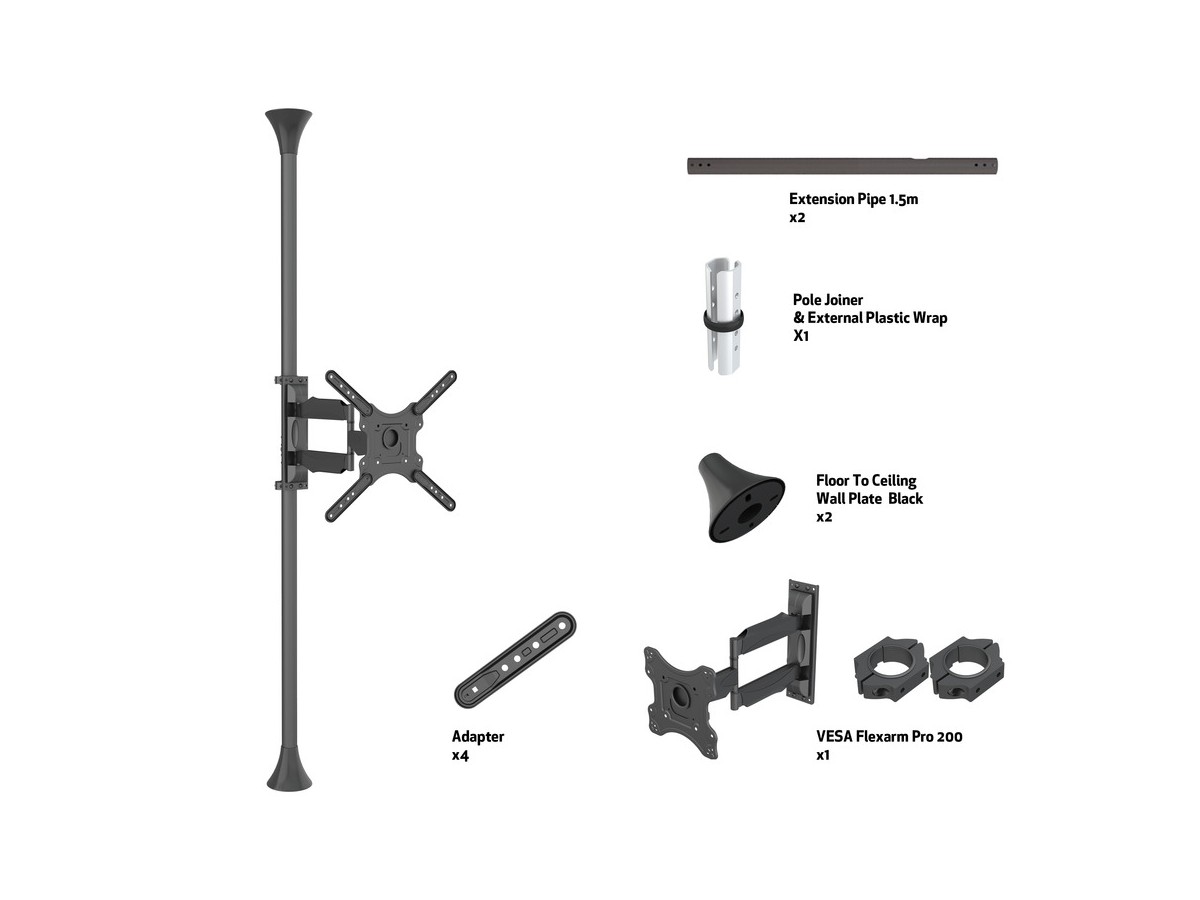 With its modular construction installers can tailor the M Floor to Ceiling Mount Pro MBFC1F with the clients need in mind. Possibilities to change, update and reconfigure its design and if ideas change over time Pro Series can follow.