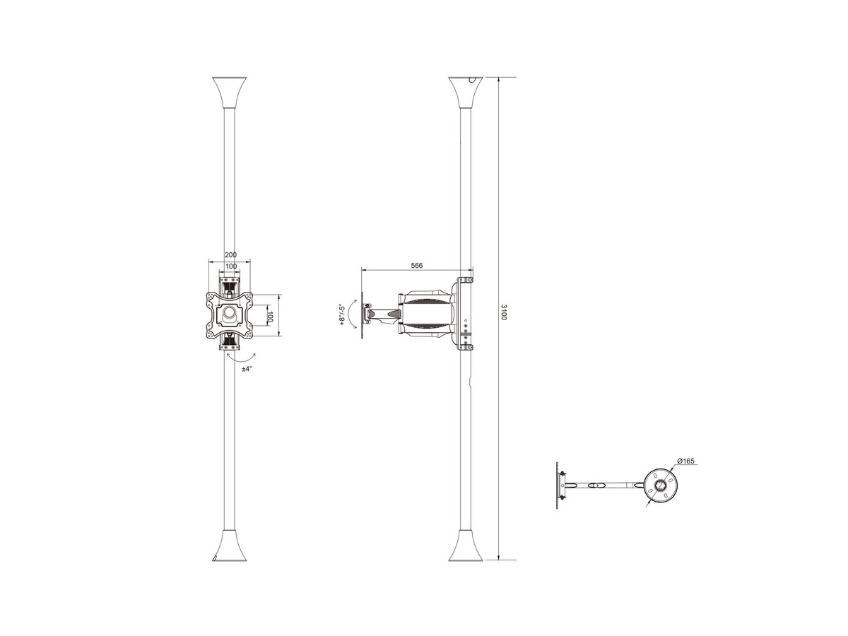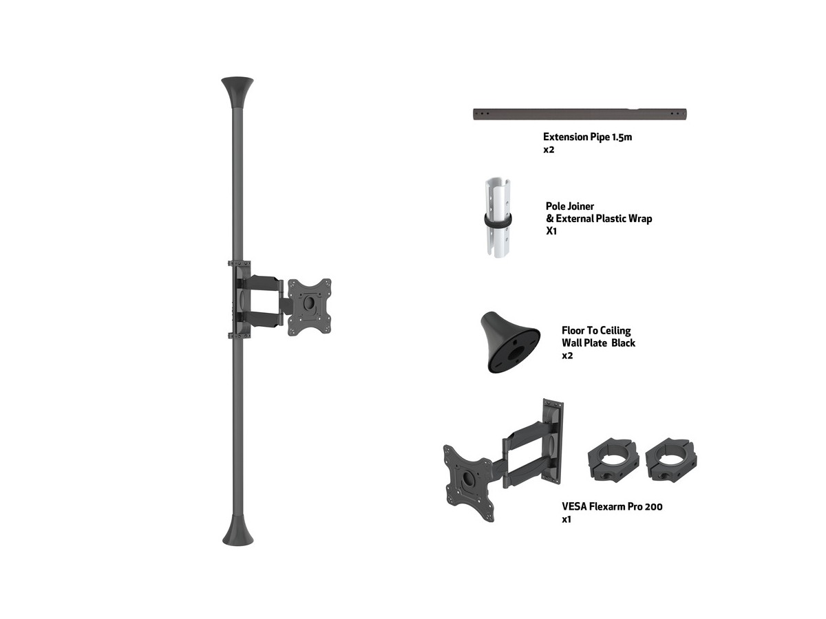 Product code:M Floor to Ceiling Mount Pro MBFC1F, VESA200 - Ceiling mount for LCD display, steel, 3m length, 1 screen, single side, tilt arms, VESA 100x100,200x100, 200x200 - screen size: 17"-46" - black