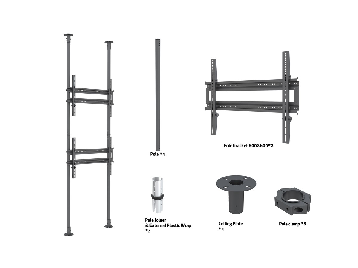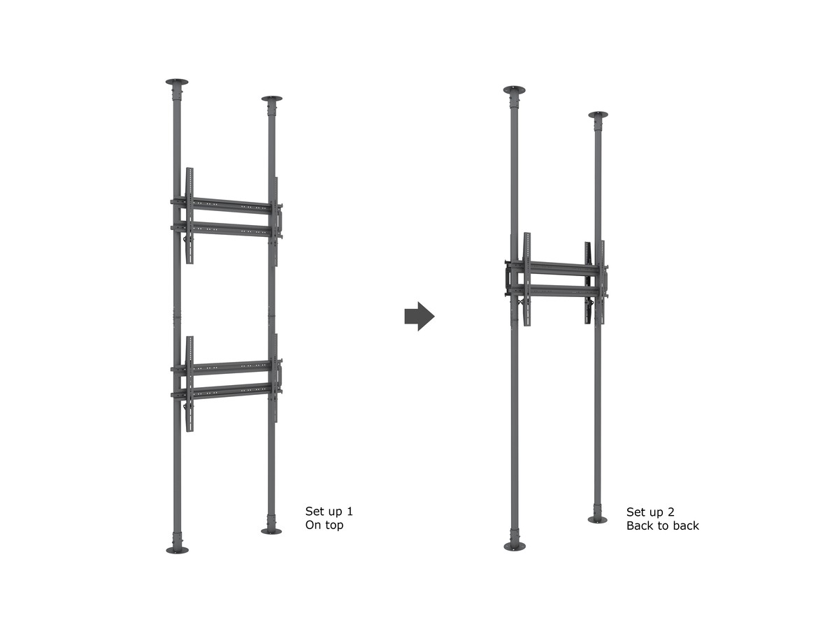 Product code:M Floor to Ceiling Mount Pro MBFC2P2UHD - Ceiling mount for LCD display, steel, 3m length, dual pole, 2 screens, single side, fixed arms, VESA Max 800x600 - Maxload: 125 kg per screen - screen size: 65"-100" - black