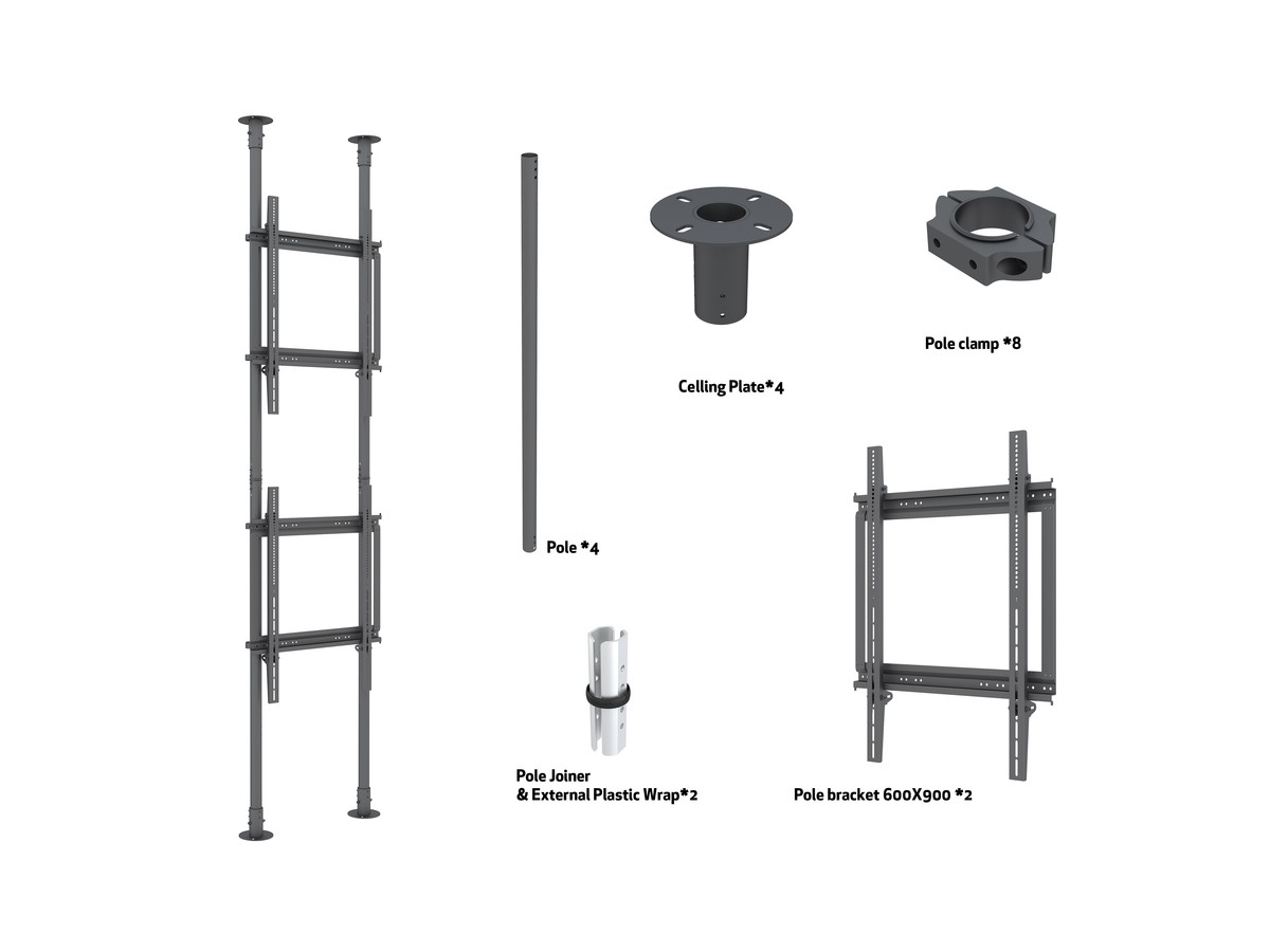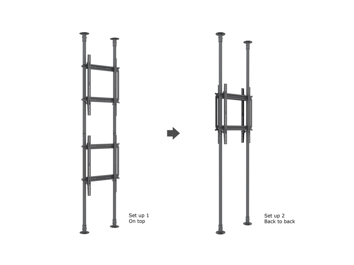 Product code:M Floor to Ceiling Mount Pro MBFC2P2UHD - Ceiling mount for LCD display, steel, 3m length, dual pole, 2 screens, single side, fixed arms, VESA Max 600x900 - Maxload: 125 kg per screen - Screen size: 55"-75" - black